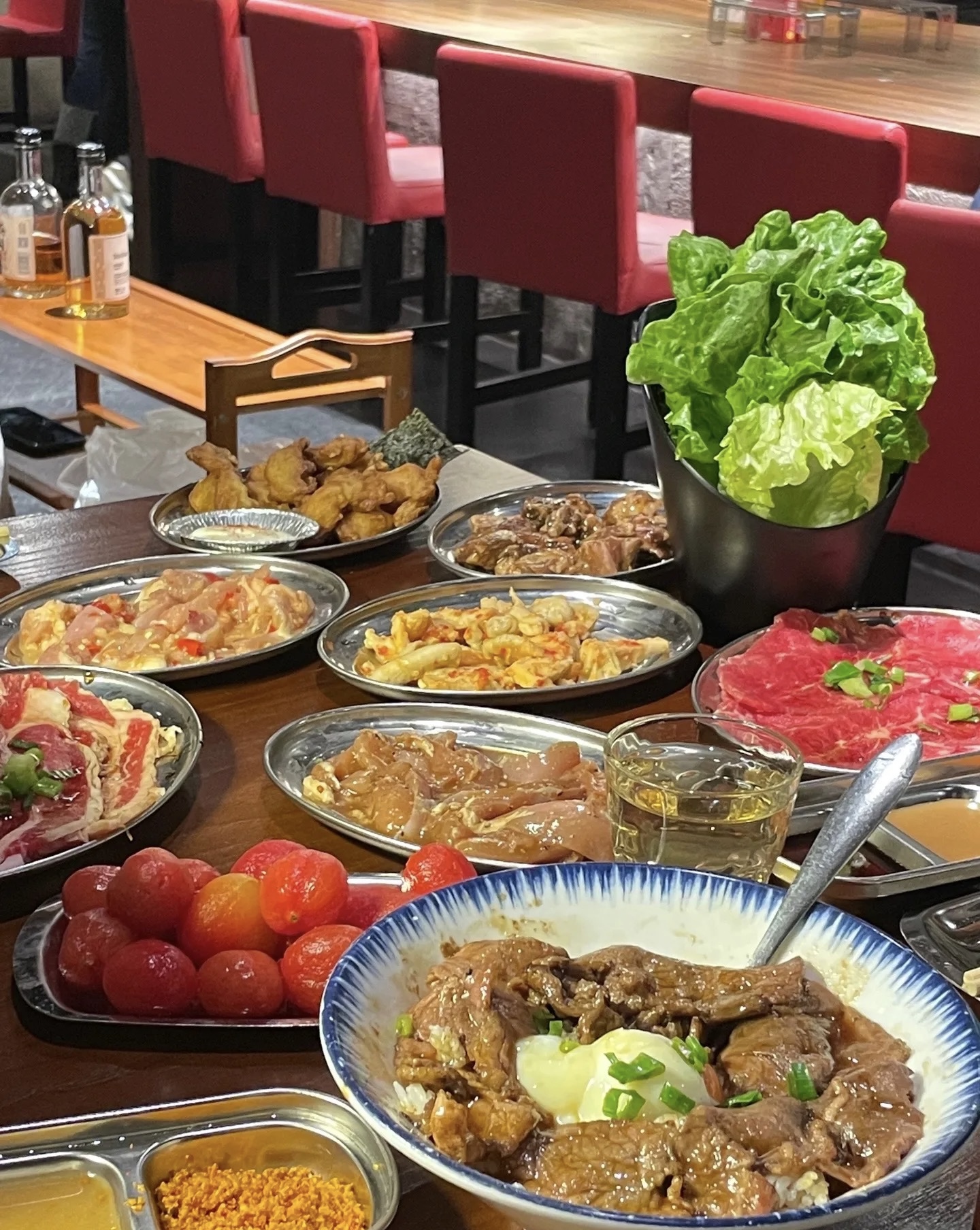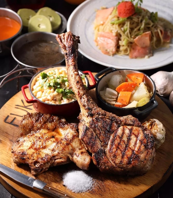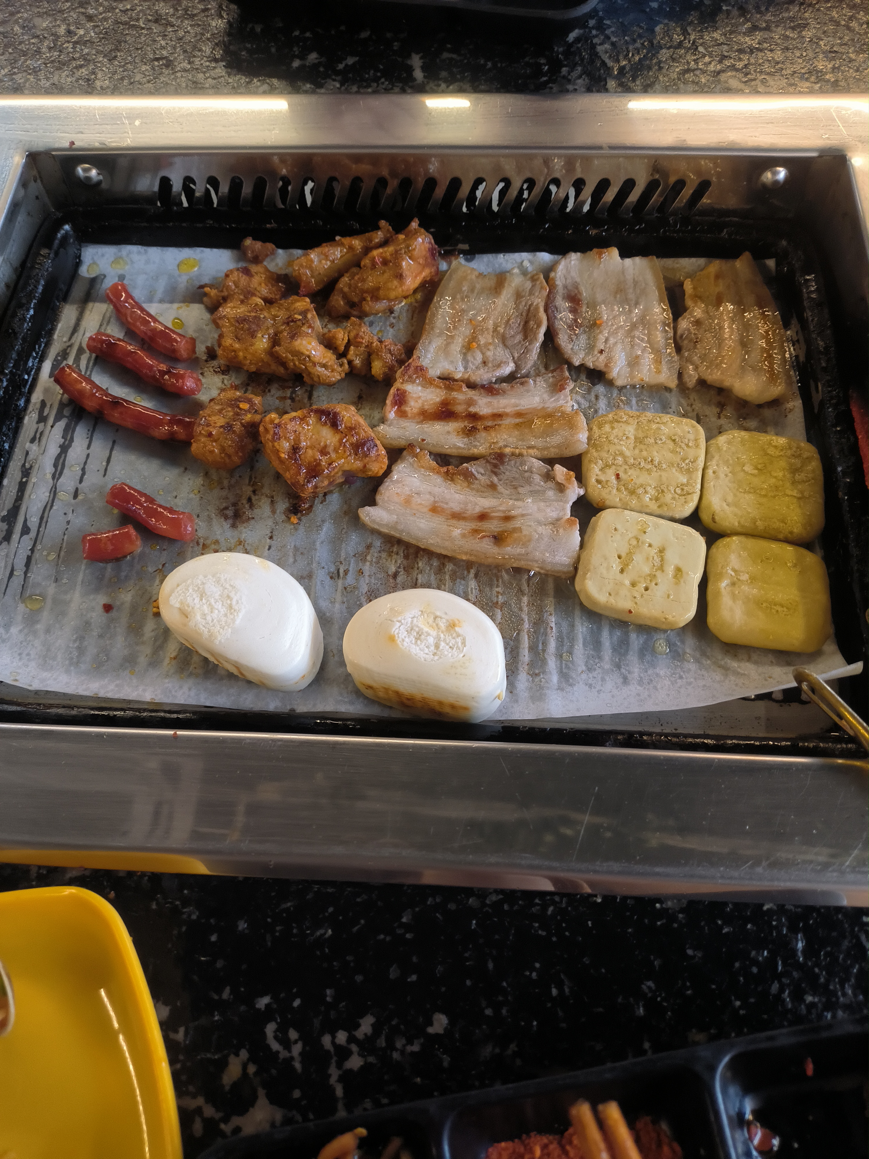 Grilled Meat Platter | ["chicken","pork","sausage","tofu"] | ["chicken:200g","pork:150g","sausage:100g","tofu:100g"] | |