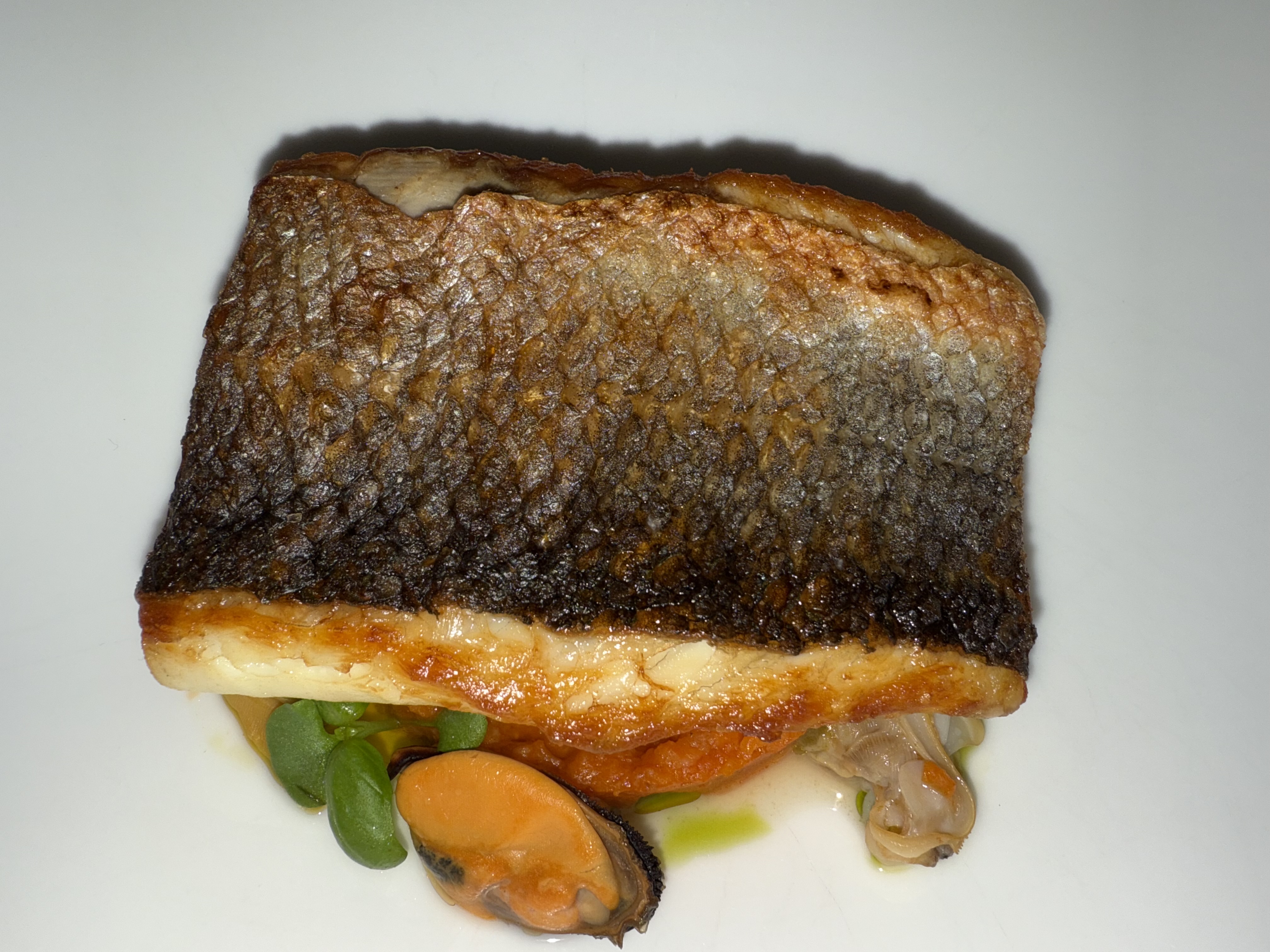 Pan-Seared Fish | ["fish","mussels","vegetables"] | ["fish:200g","vegetables:50g"] | |