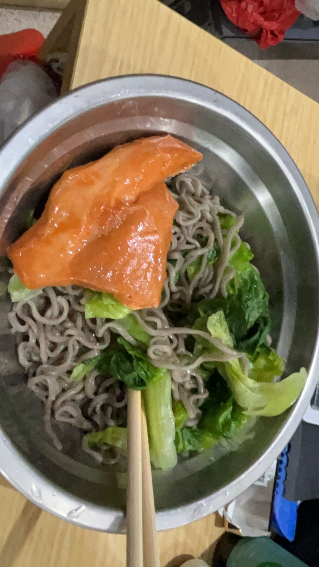 Salmon Soba Noodles | ["salmon","soba noodles","greens"] | ["salmon:150g","soba noodles:200g","greens:100g"] | |