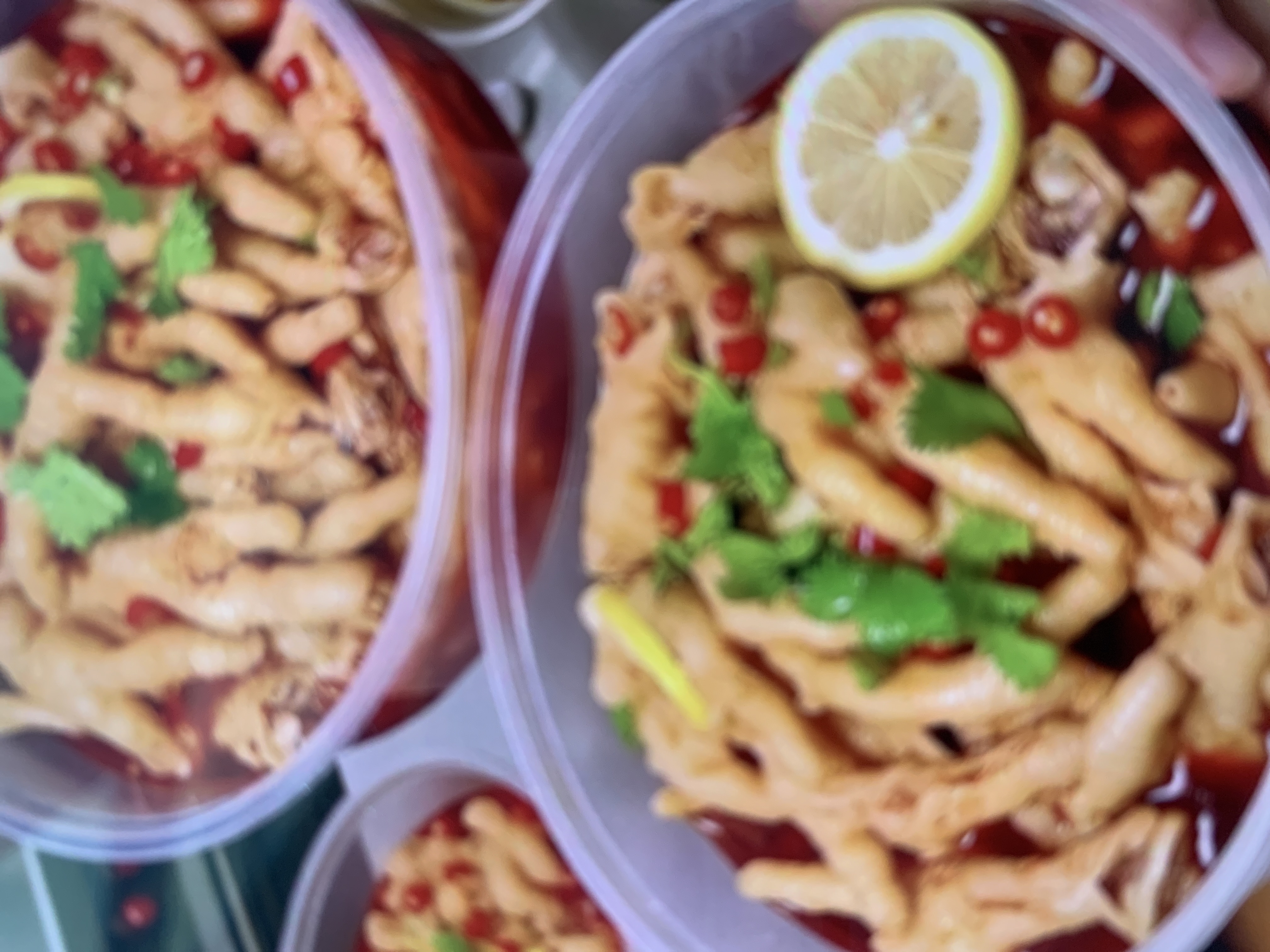 Spicy Chicken Feet | ["chicken feet","spicy sauce","coriander","lemon"] | ["chicken feet:300g","sauce:50g"] | |