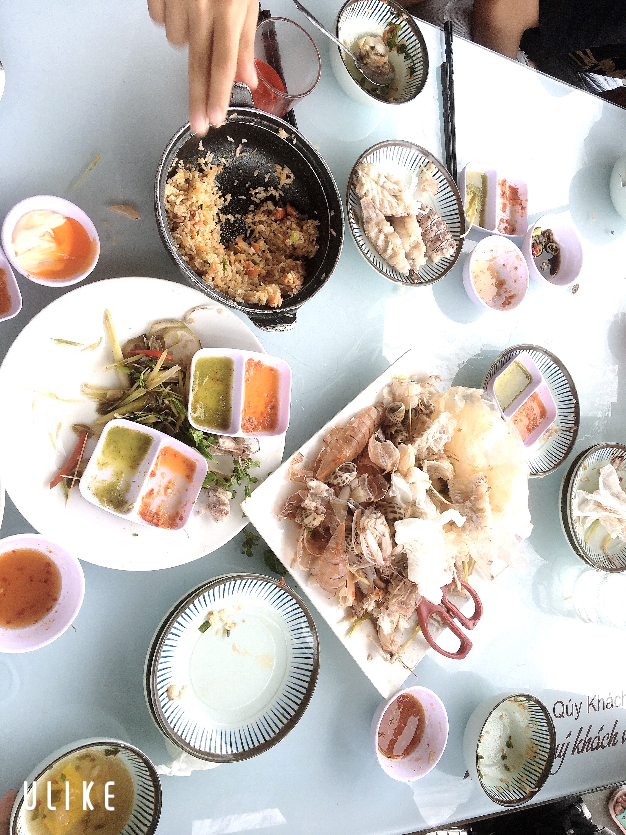 Seafood Rice Platter | ["rice","shrimp","fish","sauces","vegetables"] | ["rice:300g","seafood:200g","sauces:50g"] | |