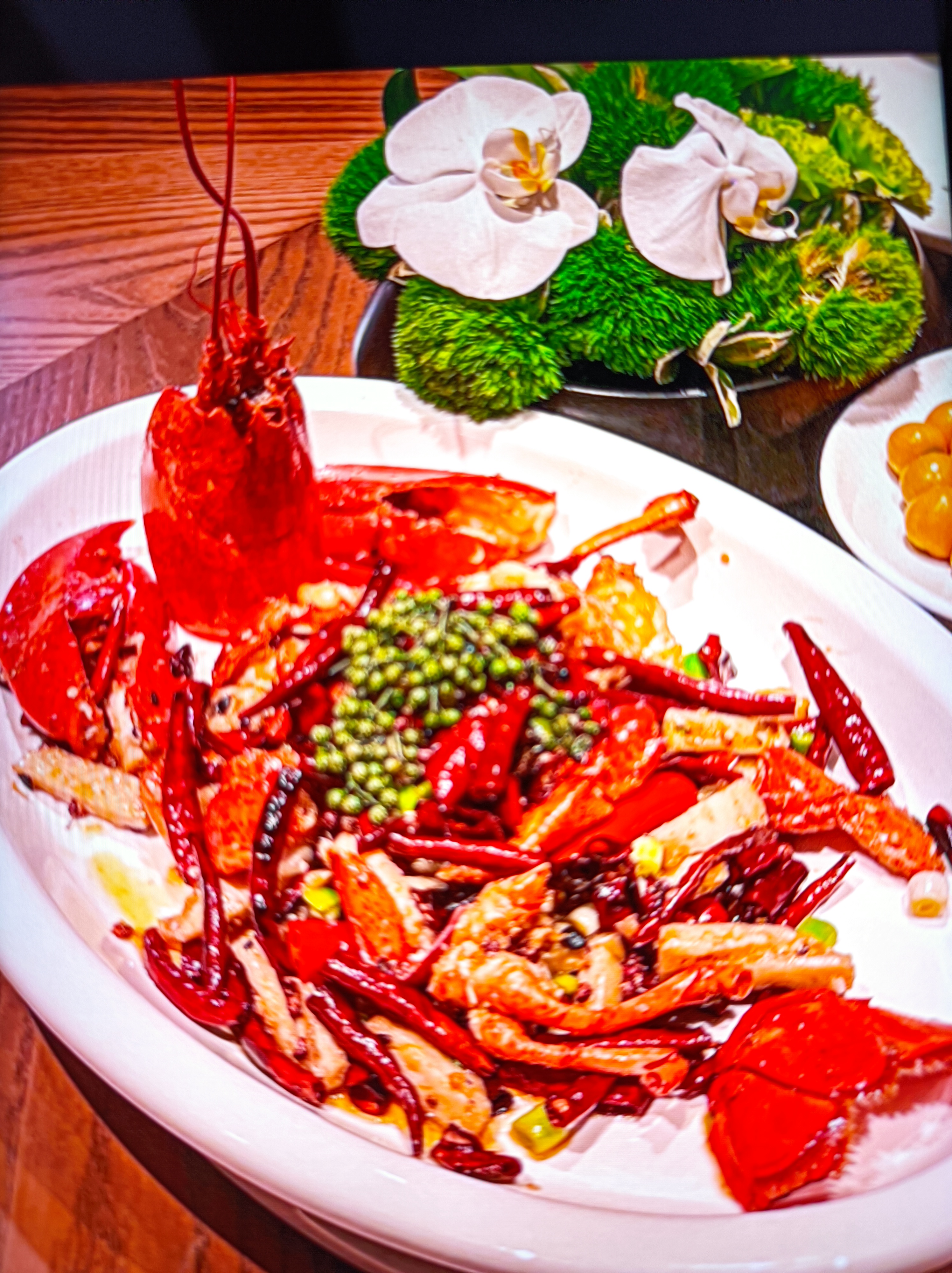 Spicy Lobster | ["lobster","dried chilies","green pepper","vegetables"] | ["lobster:300g","spices:50g","vegetables:100g"] | |