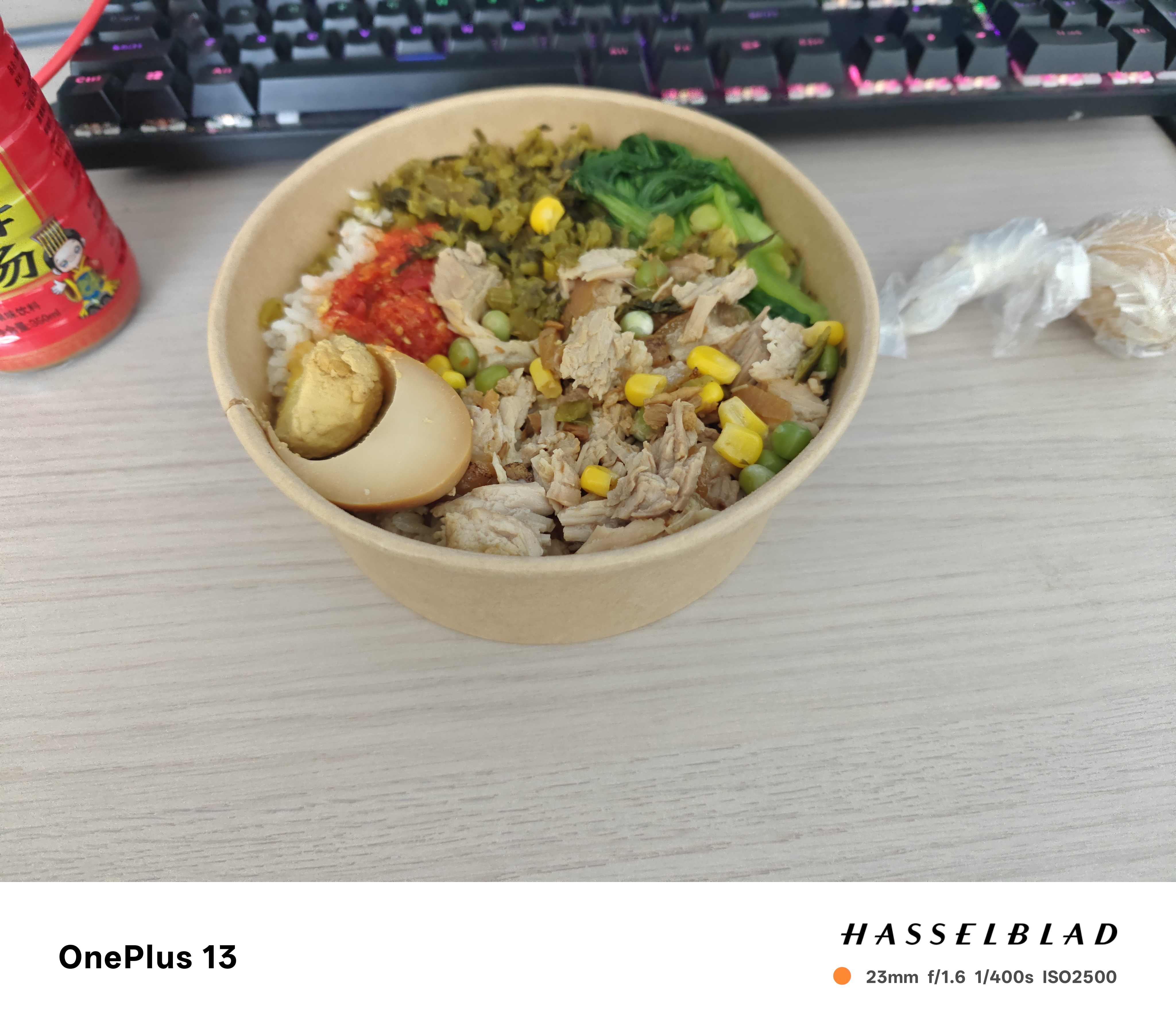 Rice Bowl with Chicken | ["rice","chicken","vegetables","egg","sauce"] | ["rice:250g","chicken:100g","vegetables:100g","egg:50g"] | |