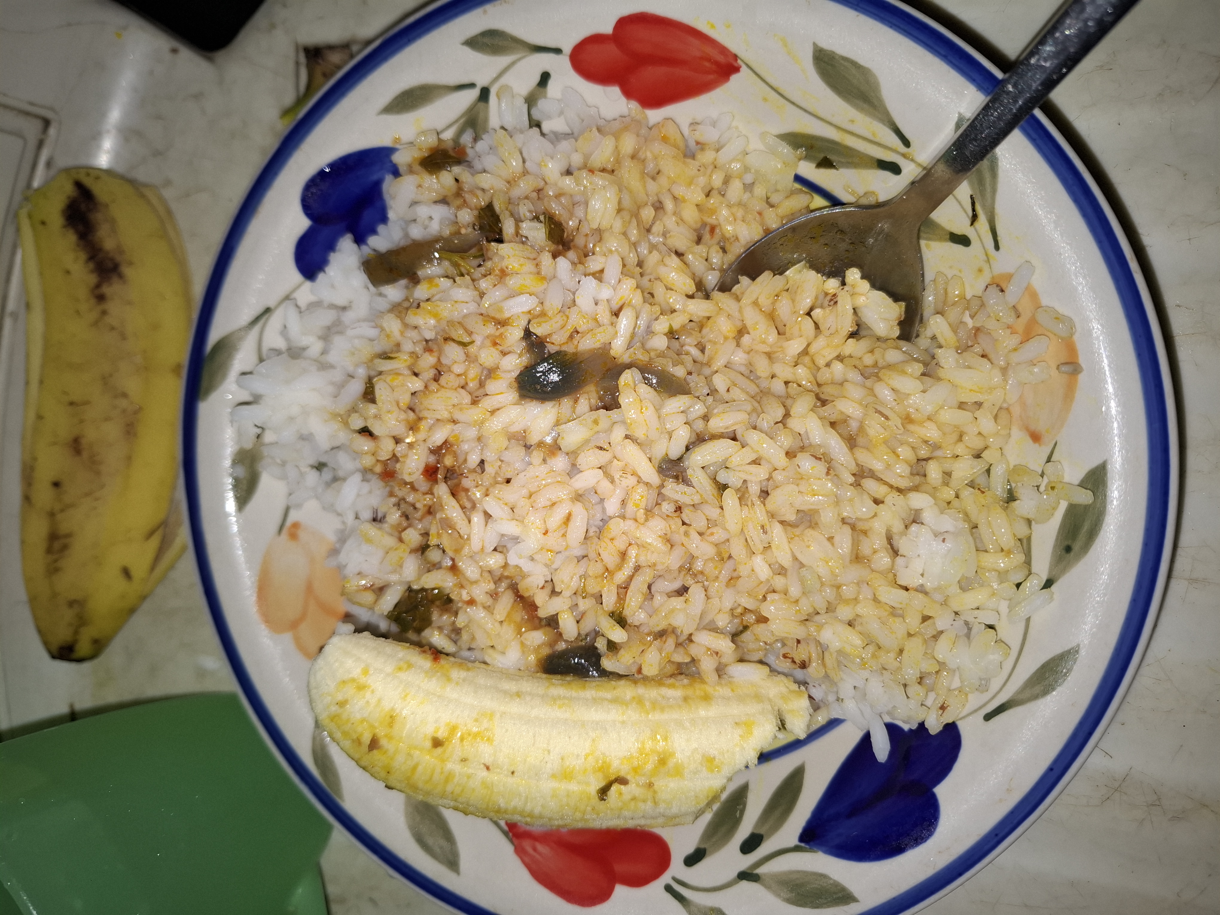 Rice with vegetables and banana | ["rice","vegetables","banana","spices"] | ["rice:300g","banana:100g","vegetables:50g"] | |