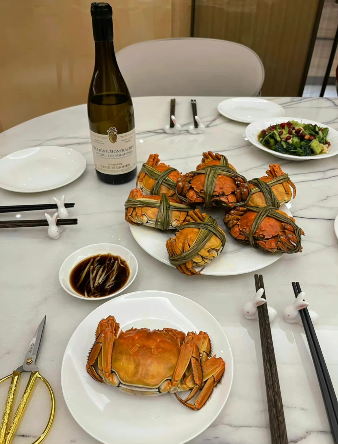 Steamed Crabs with Salad | ["crab","salad greens","dressing"] | ["crab:500g","salad:150g"] | |