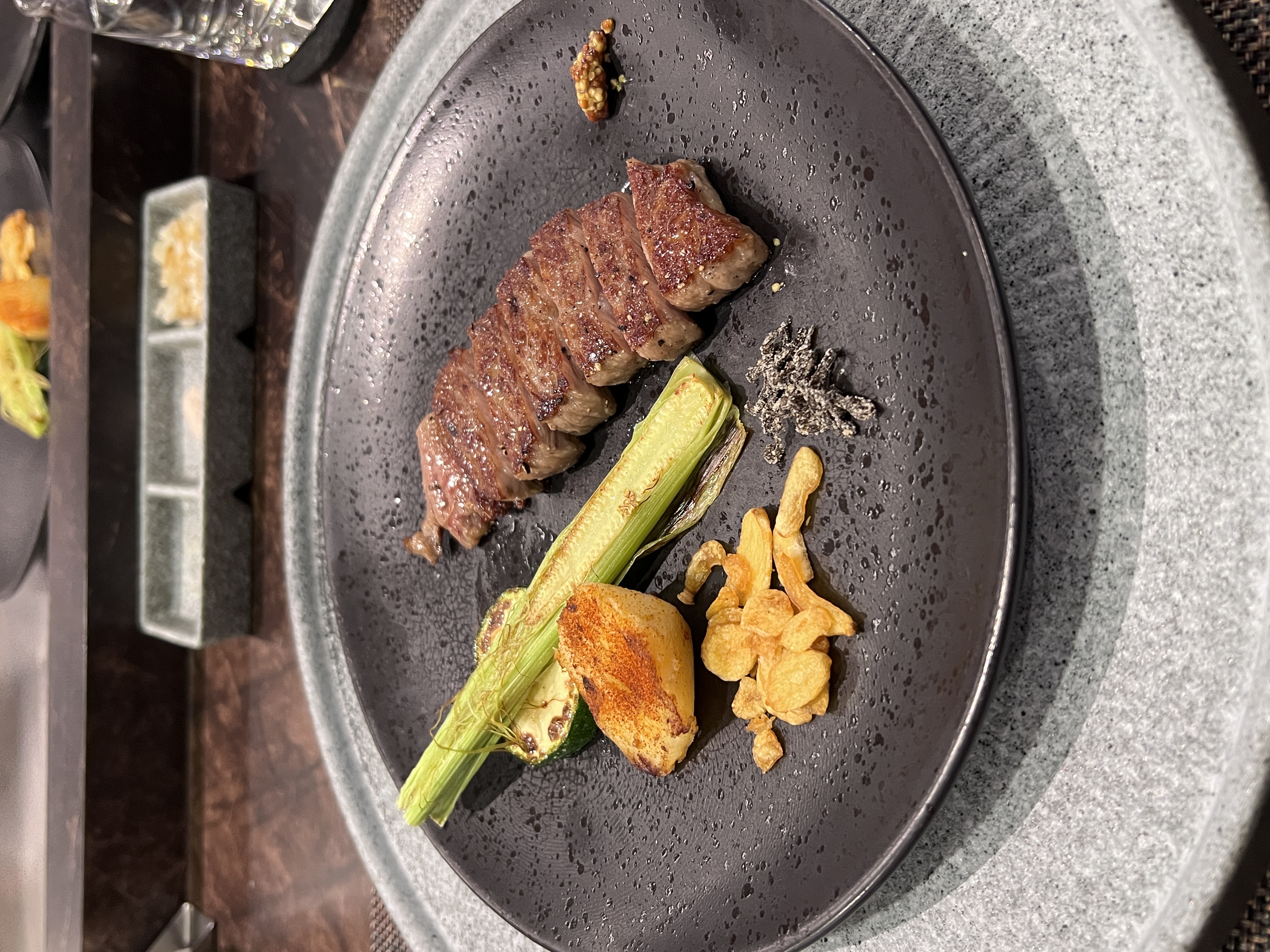Grilled Steak with Vegetables | ["steak","celery","potato","fried onions"] | ["steak:200g","celery:50g","potato:100g","fried onions:20g"] | |