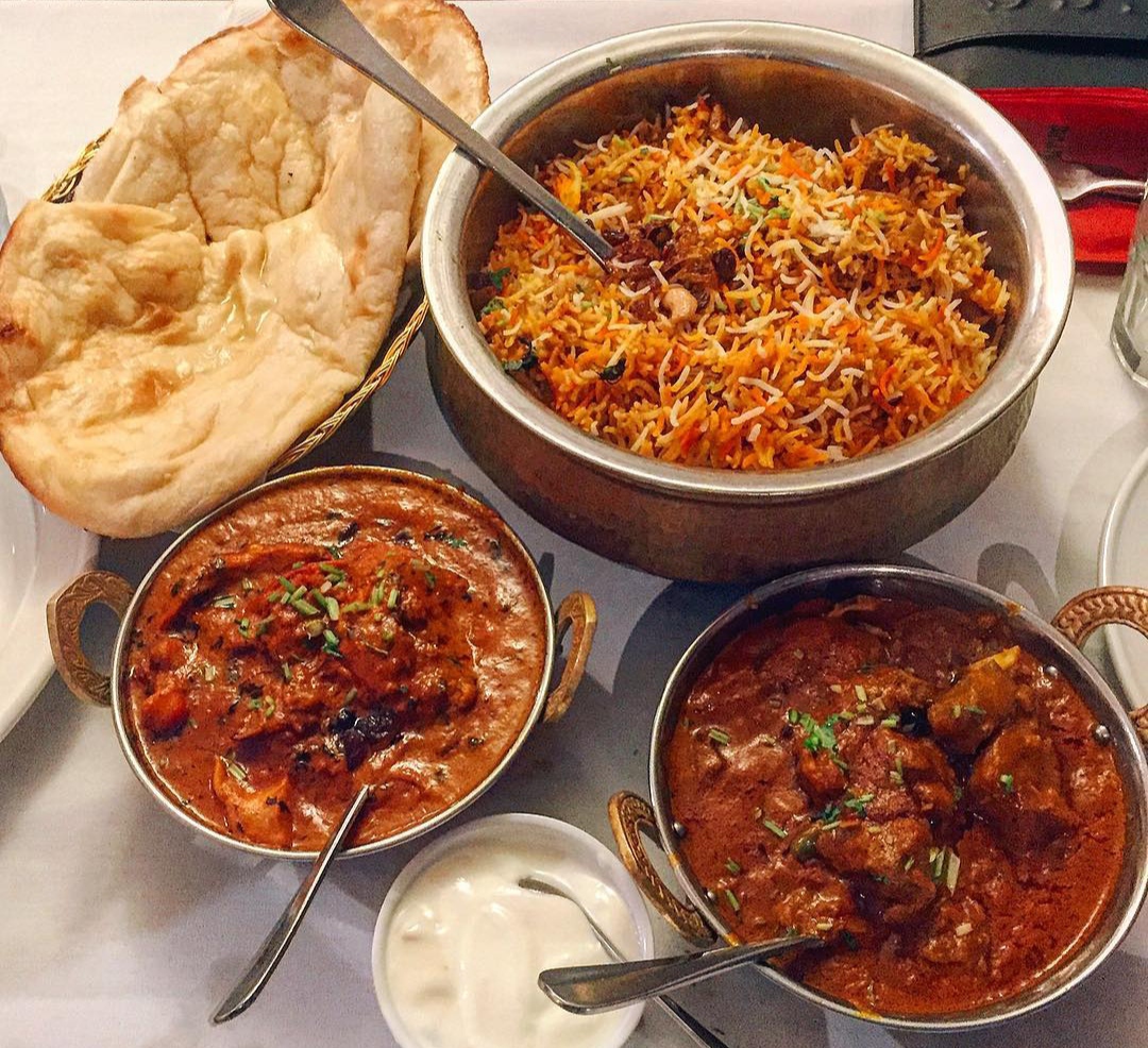Biryani with Curries | ["Basmati rice","Chicken","Spices","Naan","Yogurt"] | ["Biryani:300g","Chicken Curry:200g","Naan:100g","Yogurt:50g"] | |