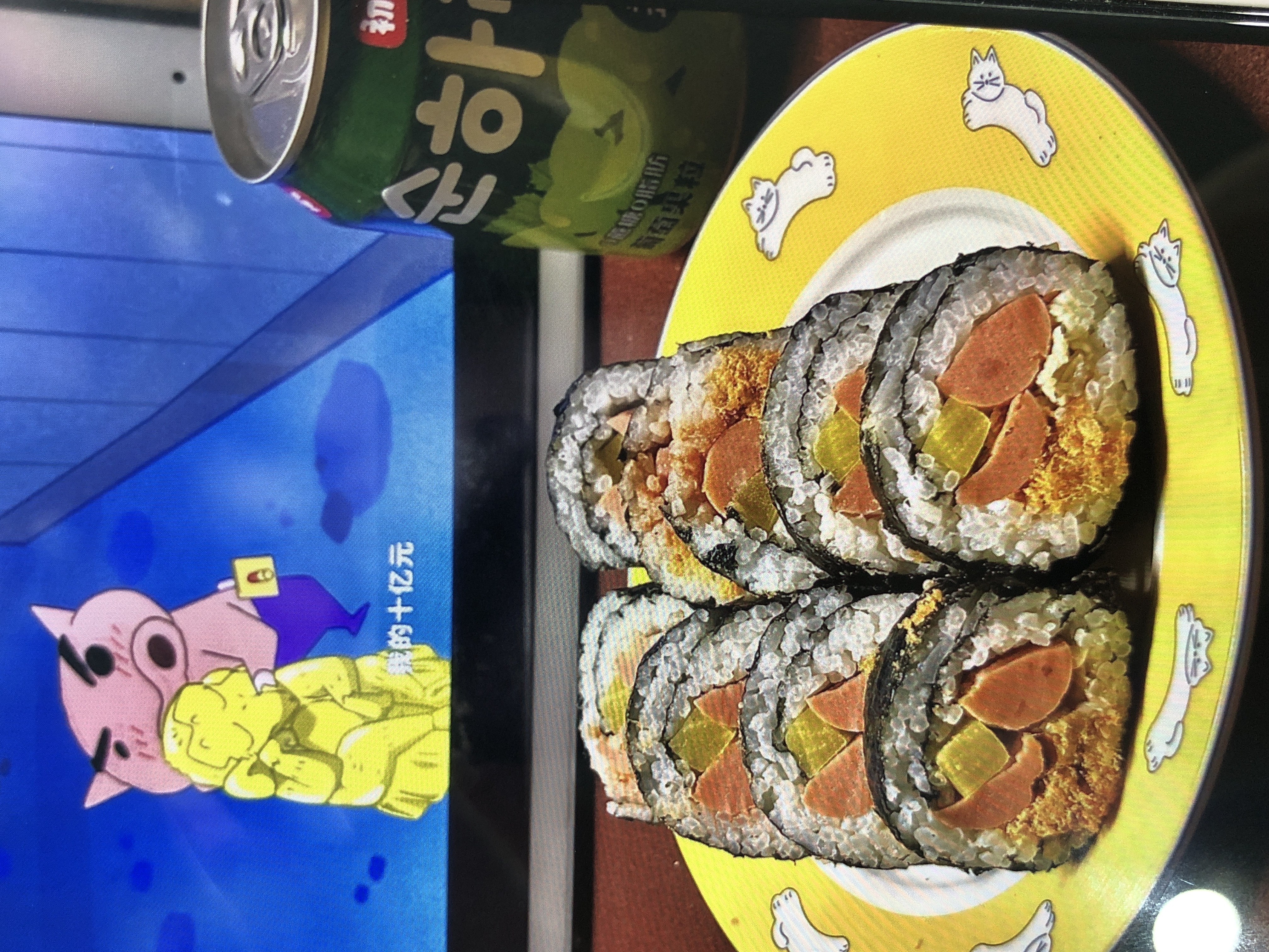 Sushi | ["sushi rice","seaweed","hot dog","pickles","egg"] | ["sushi:300g","soda:250ml"] | |