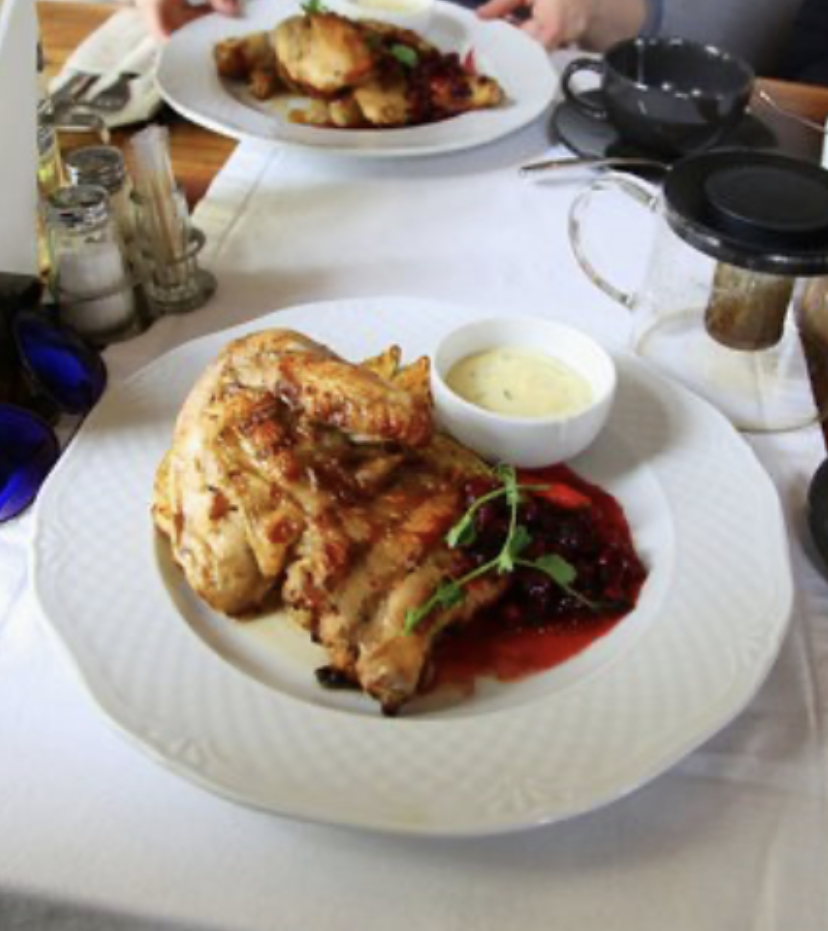 Grilled Chicken with Sauces | ["grilled chicken","berry sauce","cream sauce"] | ["chicken:250g","sauce:50g"] | |