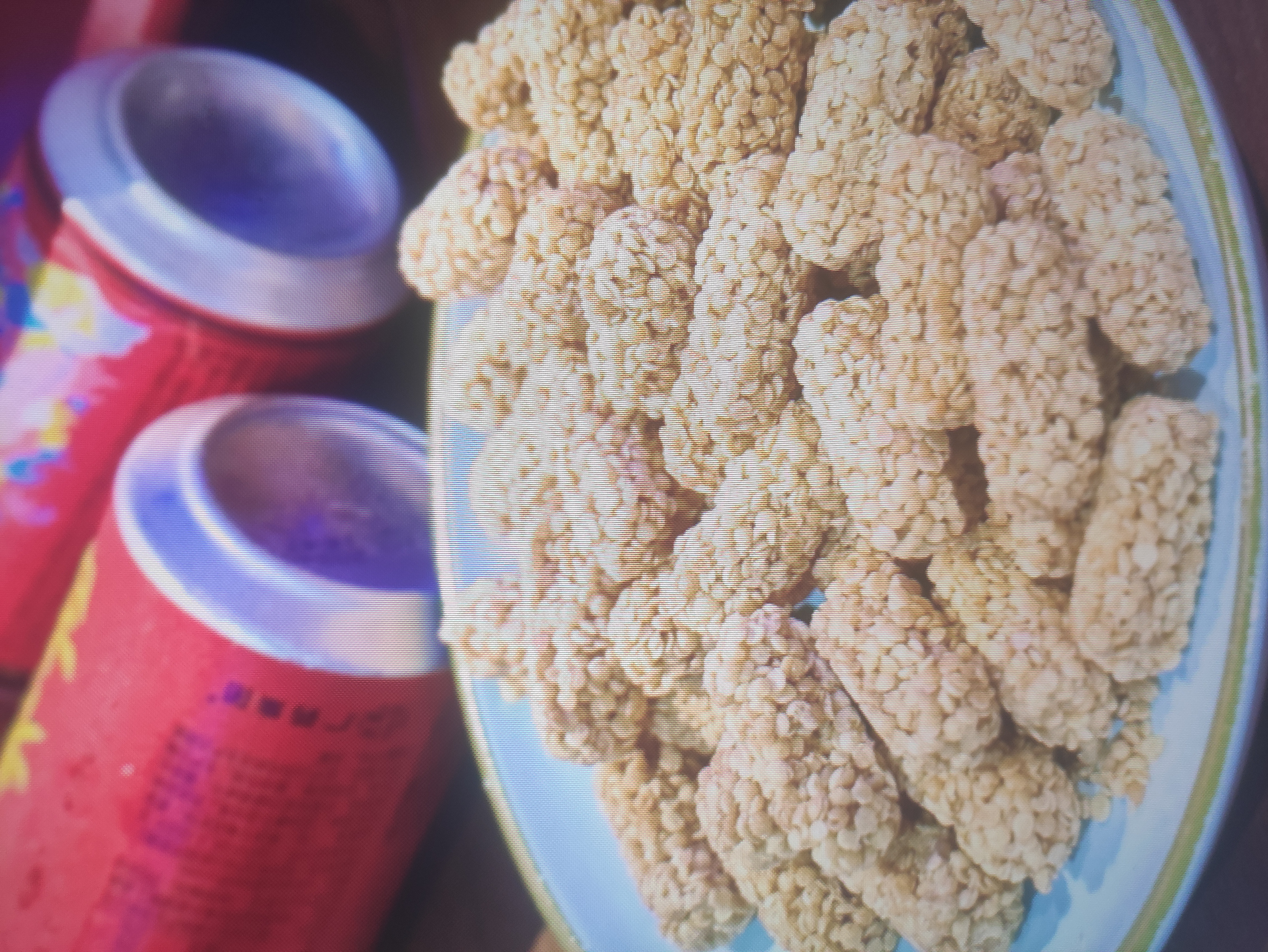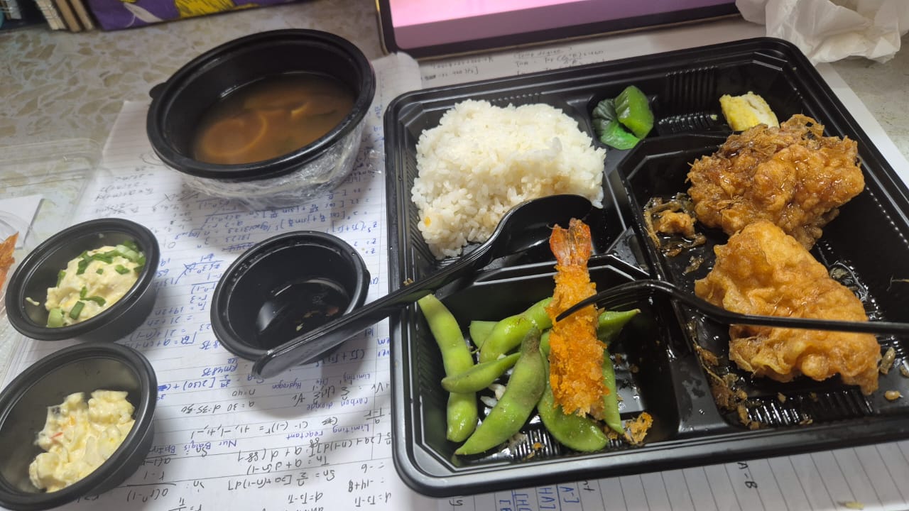 Mixed Asian Platter | ["rice","fried shrimp","fried chicken","edamame","sauces"] | ["rice:200g","fried shrimp:100g","fried chicken:150g","edamame:100g","sauces:50g"] | |