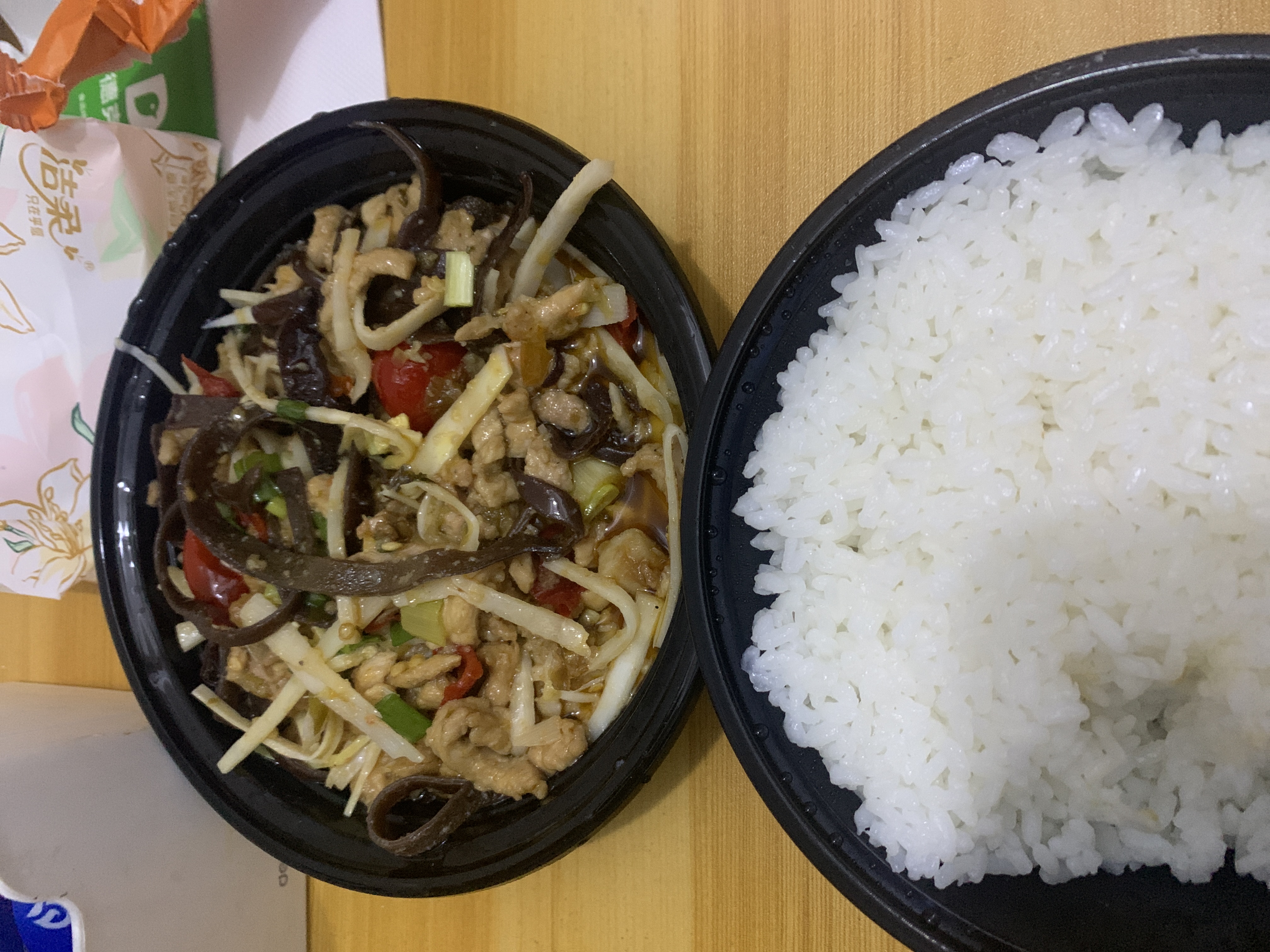 Mixed Chinese Dishes | ["rice","tofu","chicken","bell peppers","spices"] | ["rice:200g","tofu:150g","chicken:100g","vegetables:100g"] | |