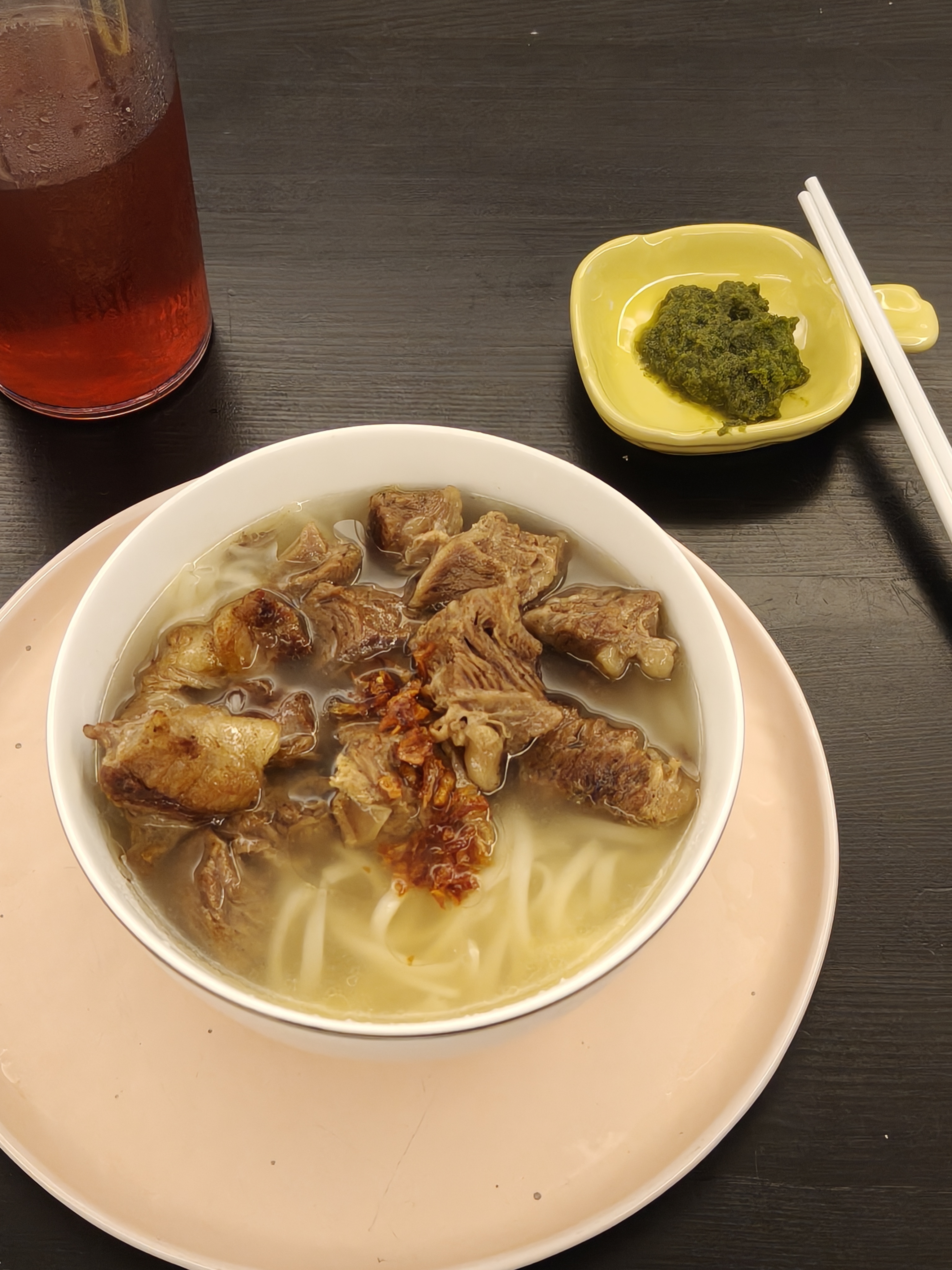 Meat Noodle Soup | ["noodles","beef","broth","spices"] | ["noodles:200g","meat:150g","broth:300g"] | |