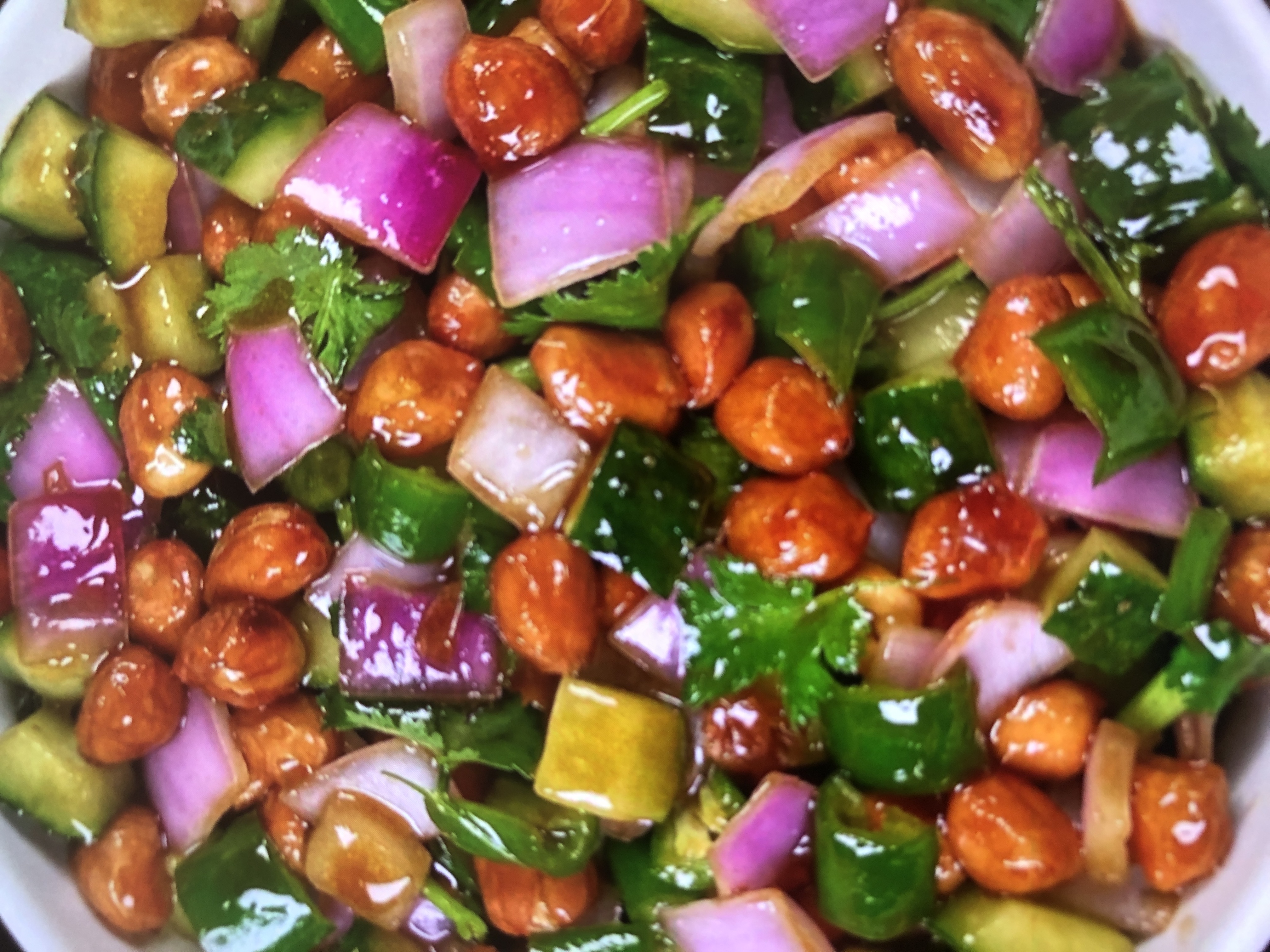 Vegetable and Nut Salad | ["peanuts","bell peppers","onions","cilantro"] | ["peanuts:100g","bell peppers:150g","onions:100g","cilantro:50g"] | |