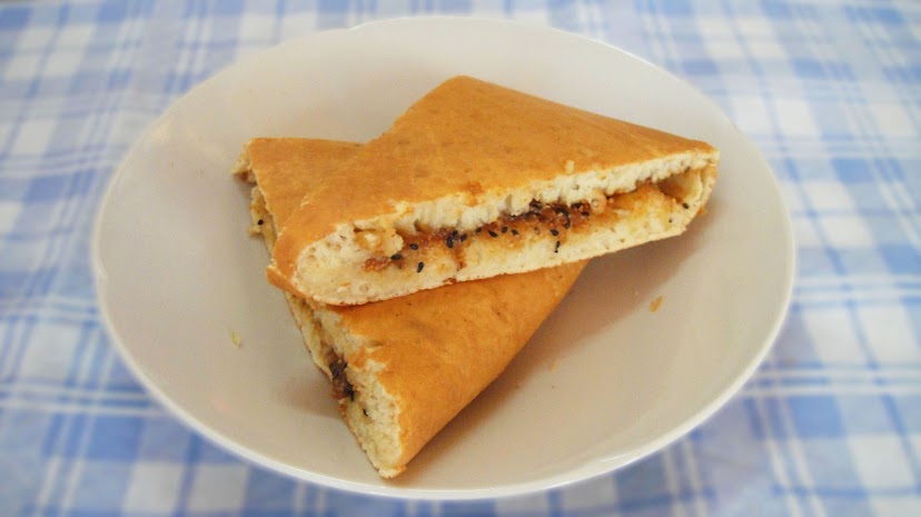 Stuffed Pancake | ["flour","water","filling (e.g., cheese, vegetables)"] | ["pancake:200g","filling:50g"] | |