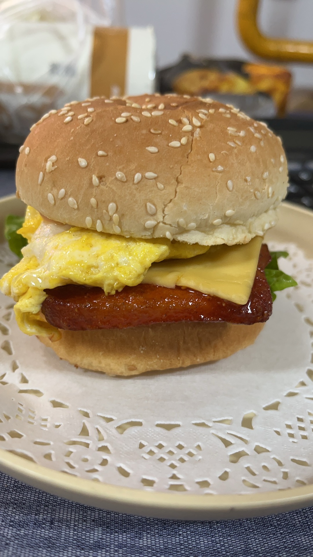 Breakfast Sandwich | ["bread","egg","cheese","ham","lettuce"] | ["bread:100g","egg:50g","cheese:20g","ham:50g","lettuce:10g"] | |