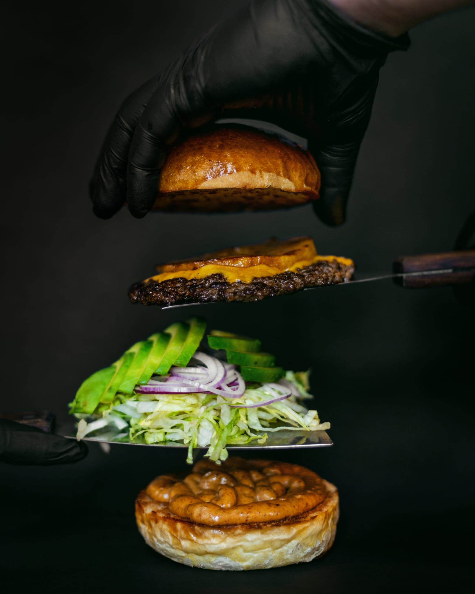 Cheeseburger | ["beef patty","cheese","burger bun","lettuce","onion","avocado"] | ["beef patty:150g","cheese:30g","bun:100g","lettuce:50g","onion:20g","avocado:50g"] | |