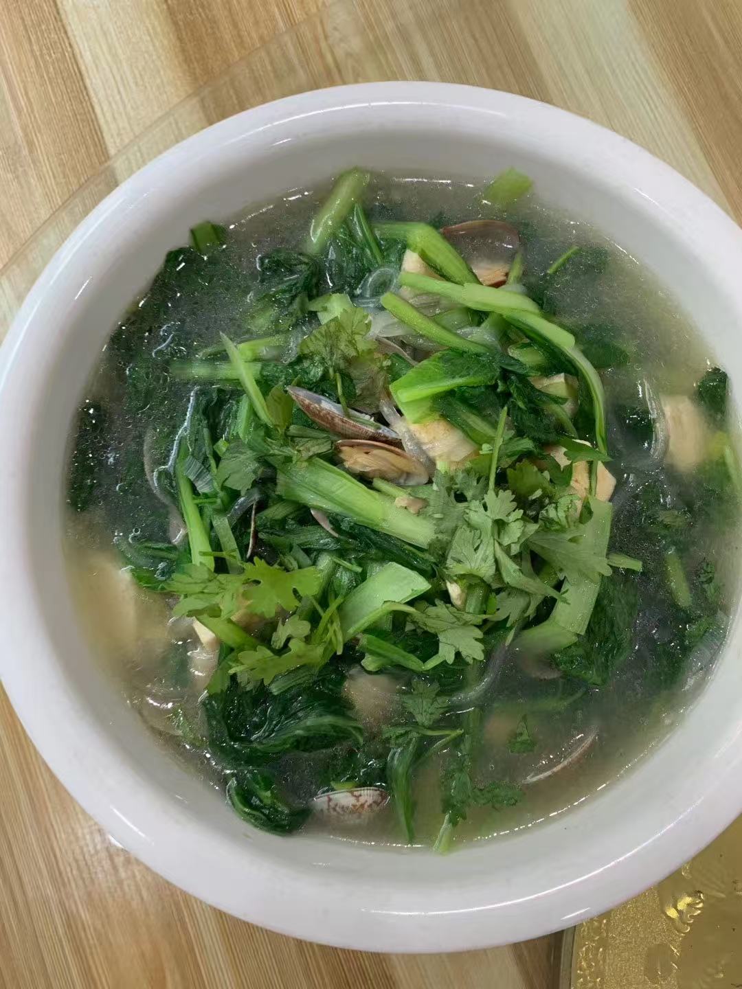 Vegetable and Seafood Soup | ["leafy greens","seafood","cilantro","broth"] | ["vegetables:200g","seafood:100g"] | |