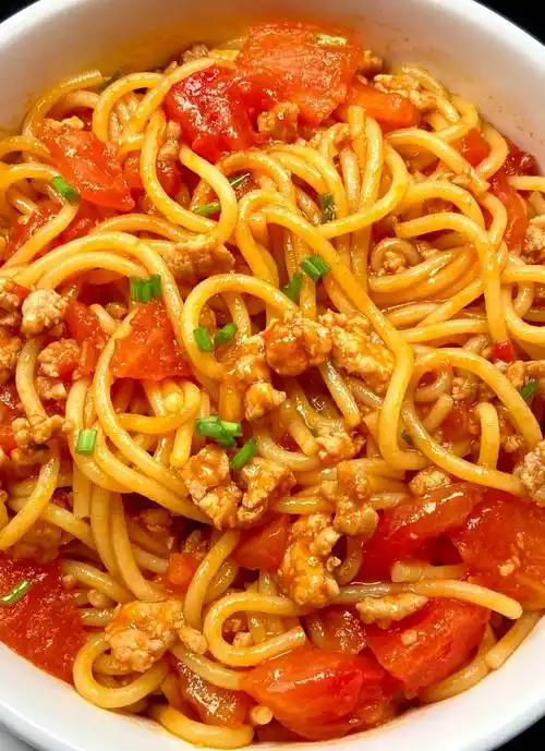 Spaghetti with Meat Sauce | ["spaghetti","ground meat","tomatoes","onions","garlic"] | ["spaghetti:200g","ground meat:100g","tomatoes:100g"] | |