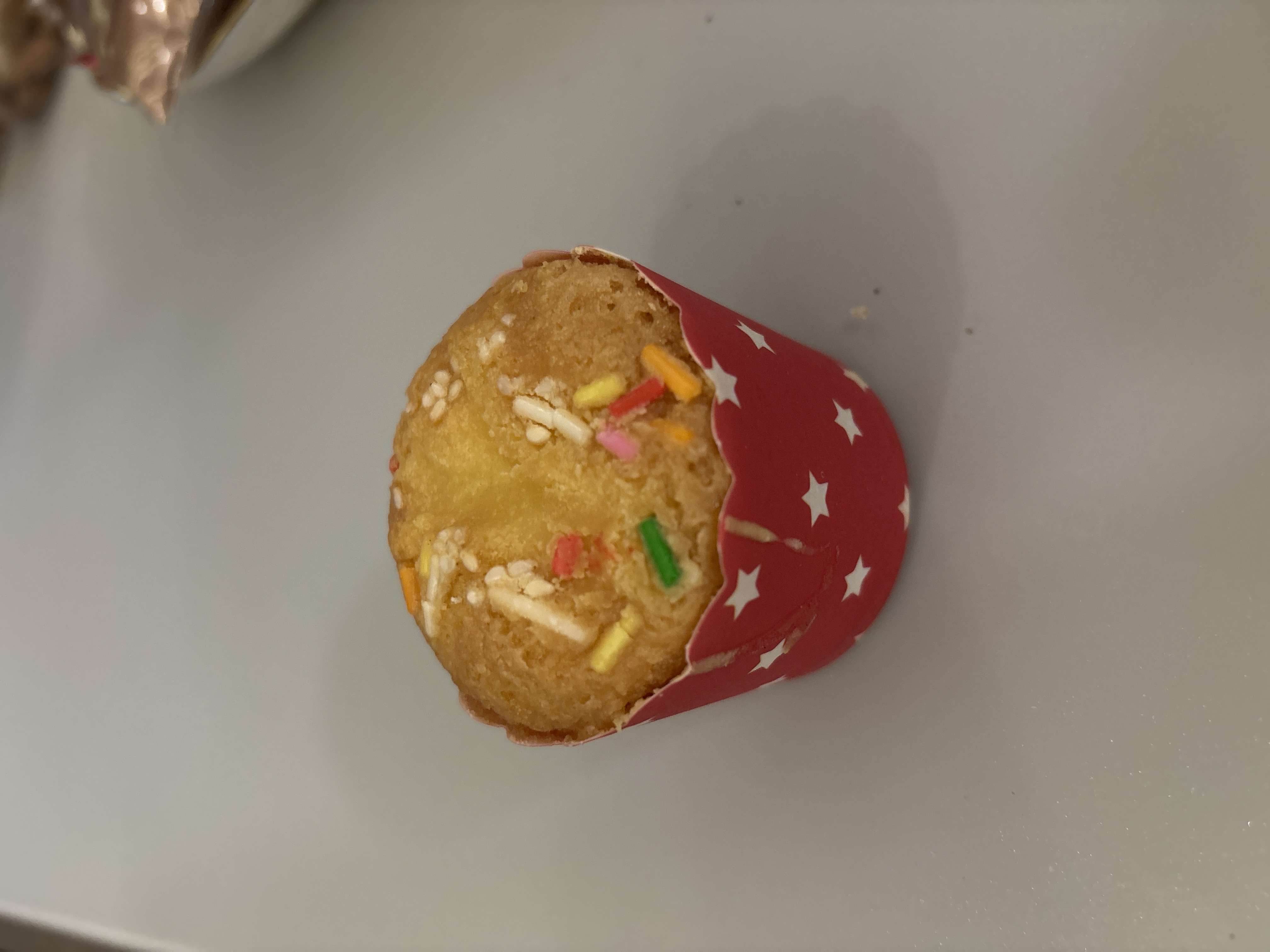 Cupcake | ["flour","sugar","butter","egg","sprinkles"] | ["flour:50g","sugar:30g","butter:10g","egg:1"] | |