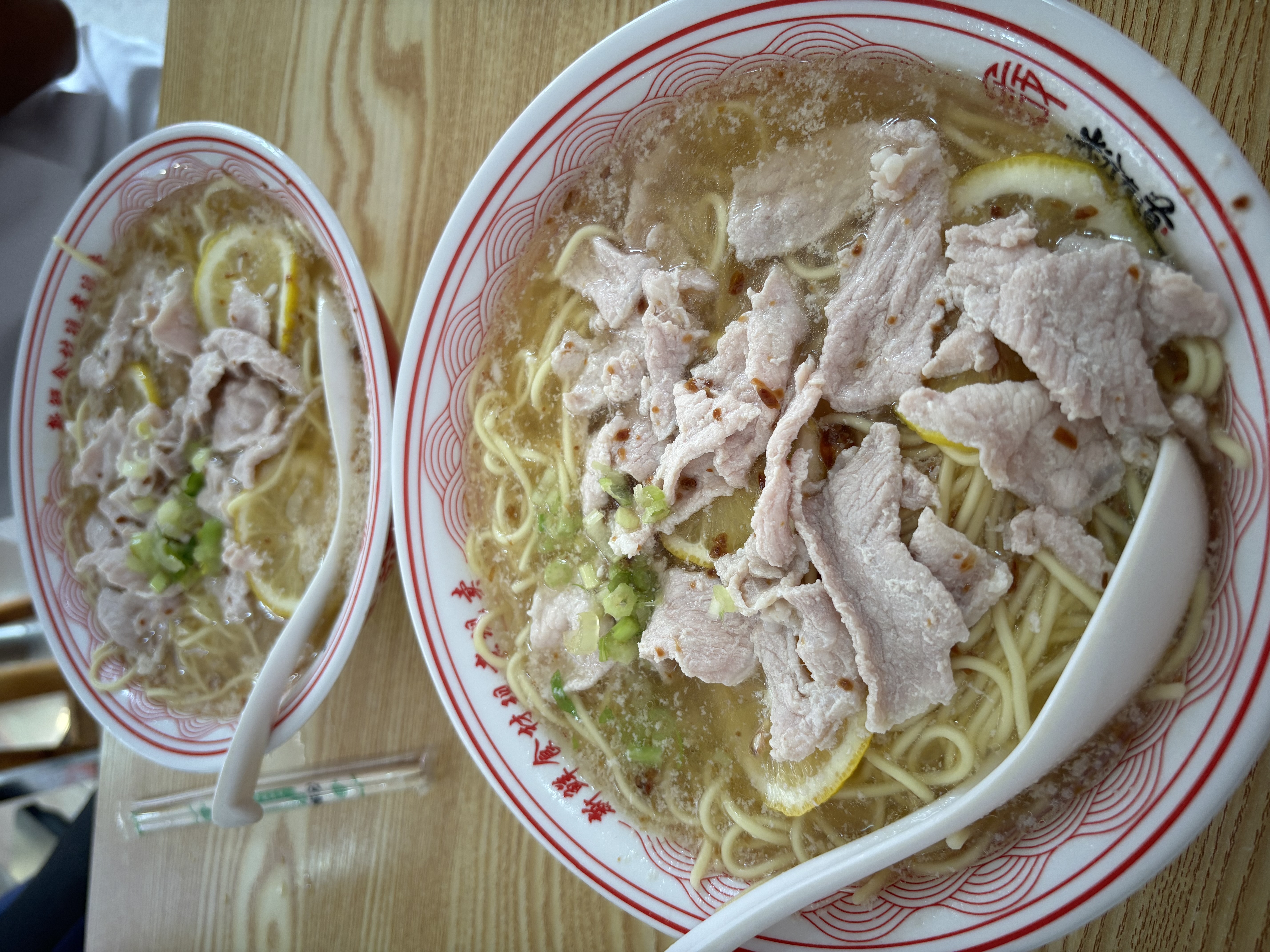 Noodle Soup with Pork | ["noodles","pork","broth","green onions","lemon"] | ["noodles:200g","pork:100g","broth:300g"] | |