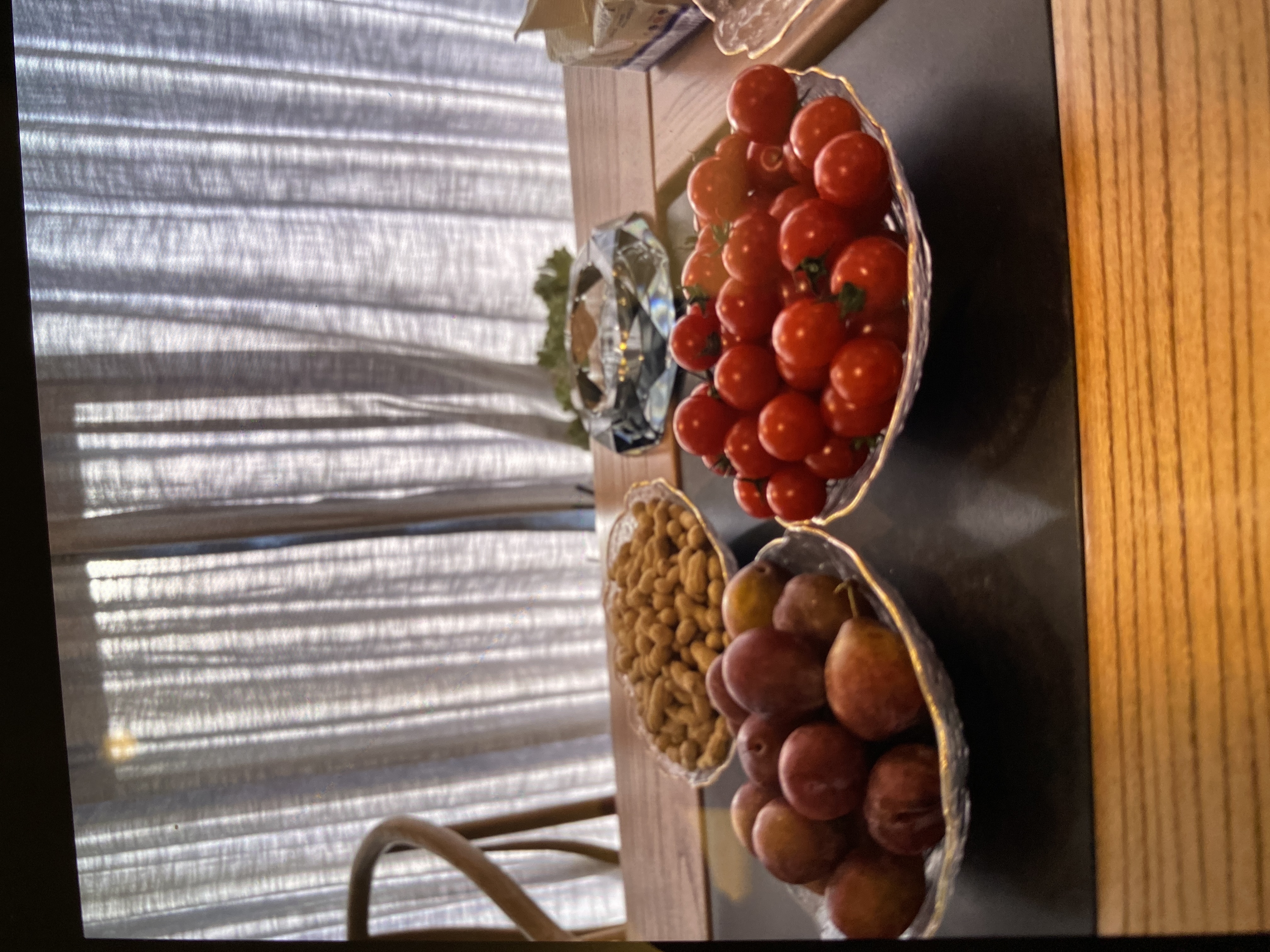 Fruit and Nut Platter | ["grapes","cherry tomatoes","almonds"] | ["grapes:200g","cherry tomatoes:150g","almonds:50g"] | |