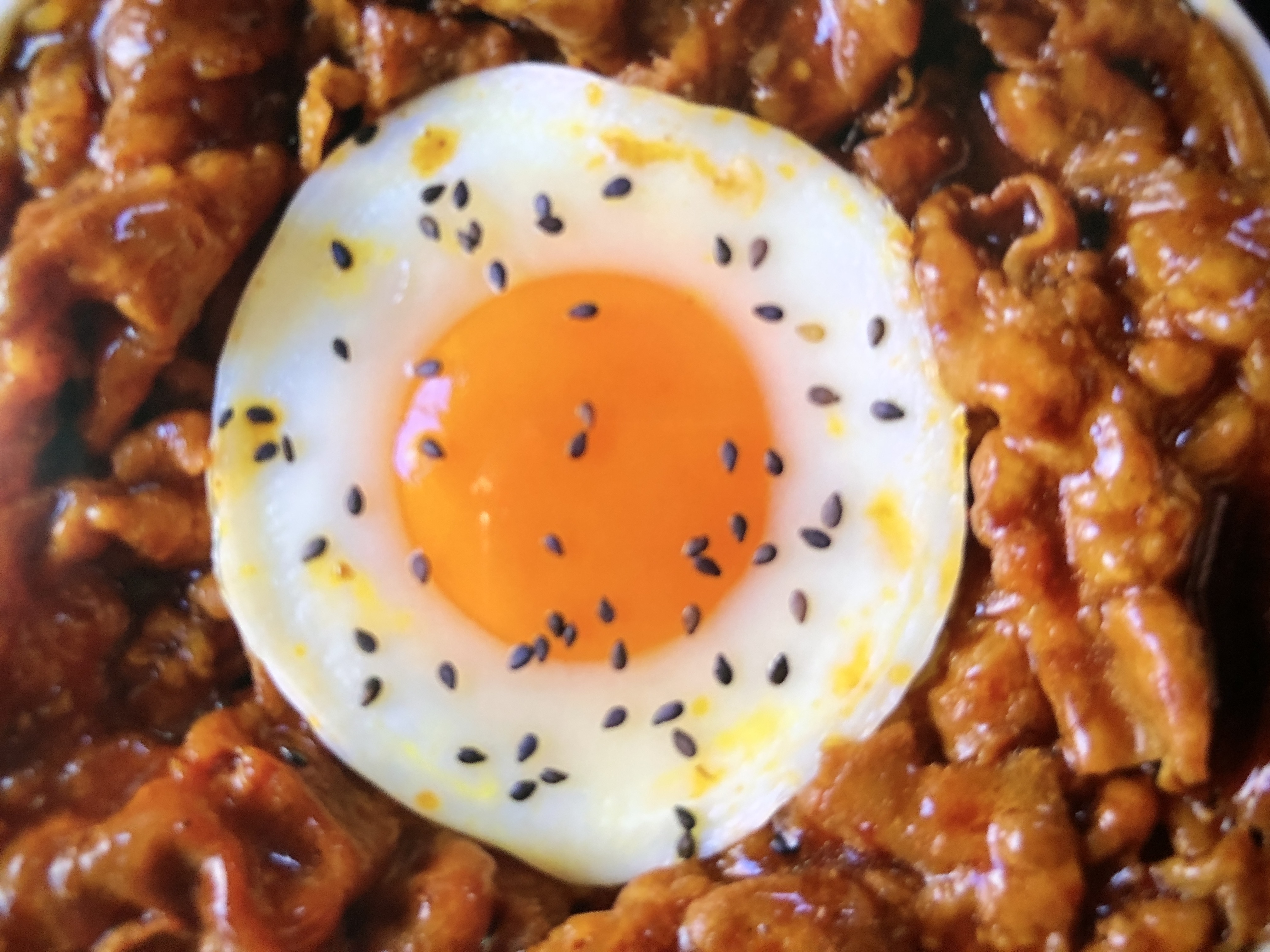 Egg and Meat Bowl | ["meat","egg","sesame seeds","sauce"] | ["meat:300g","egg:100g"] | |