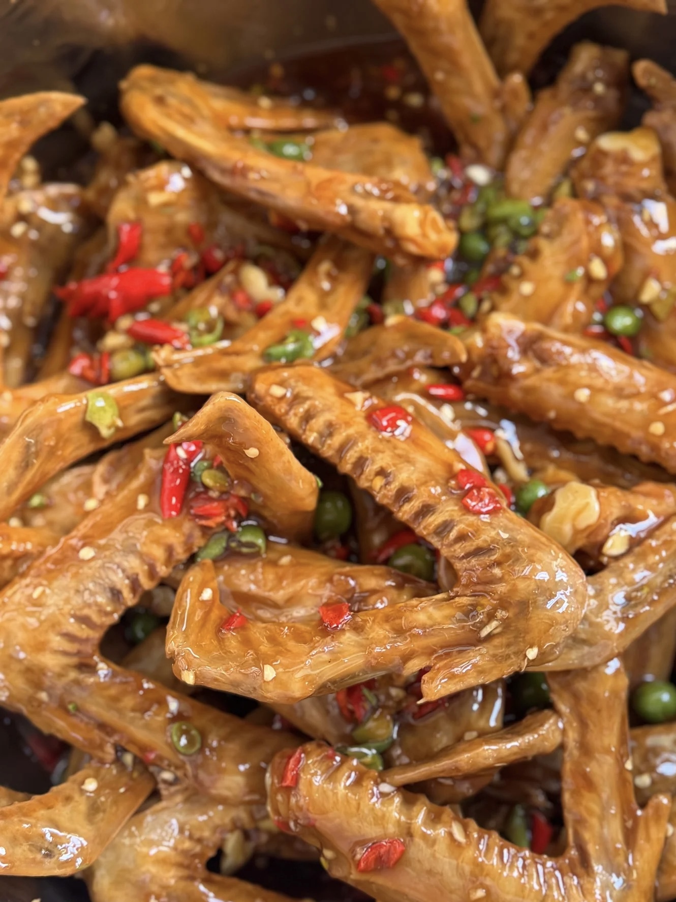 Braised Chicken Feet | ["chicken feet","soy sauce","spices","green onions","peppers"] | ["chicken feet:250g","sauce:50g"] | |