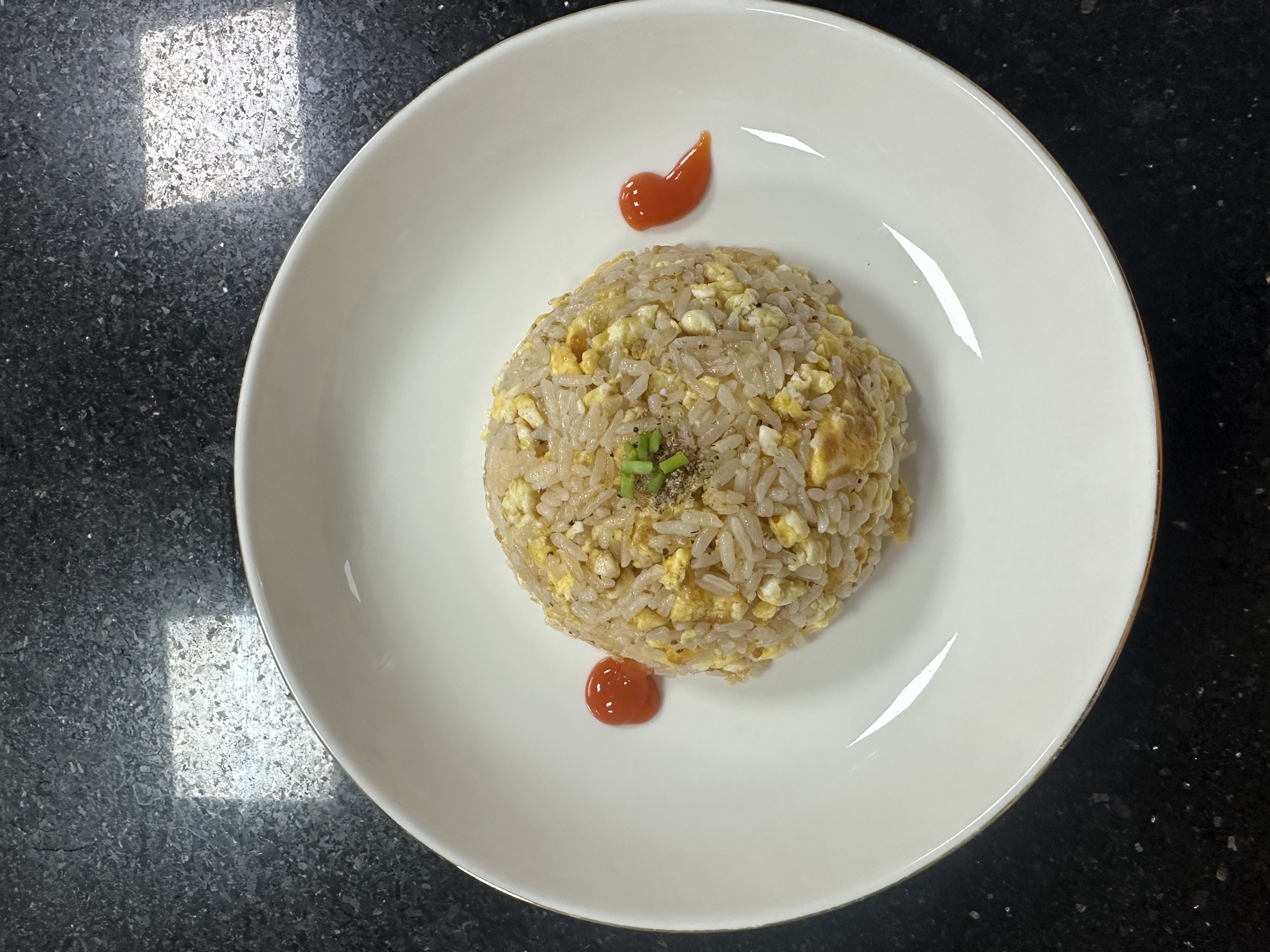 Fried Rice | ["rice","egg","green onion","ketchup"] | ["rice:300g","egg:50g","ketchup:10g"] | |