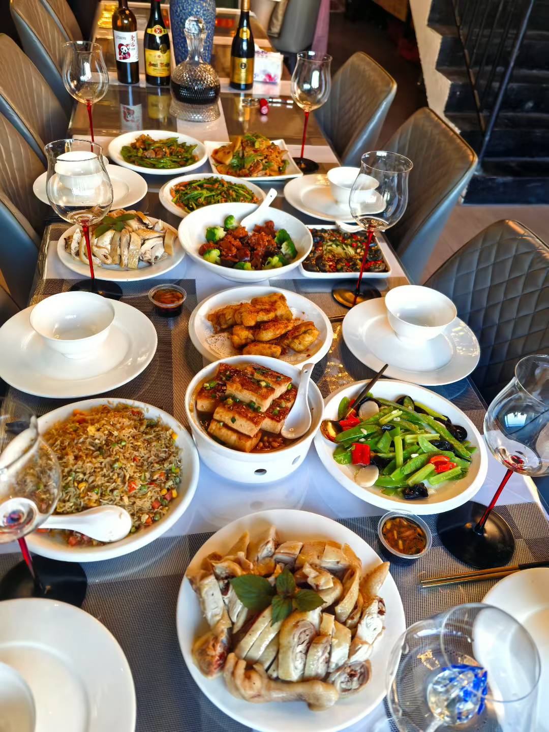 Mixed Asian Cuisine | ["fried rice","chicken","mixed vegetables","spring rolls","sauce"] | ["fried rice:300g","chicken:200g","vegetables:150g","spring rolls:100g","sauce:50g"] | |