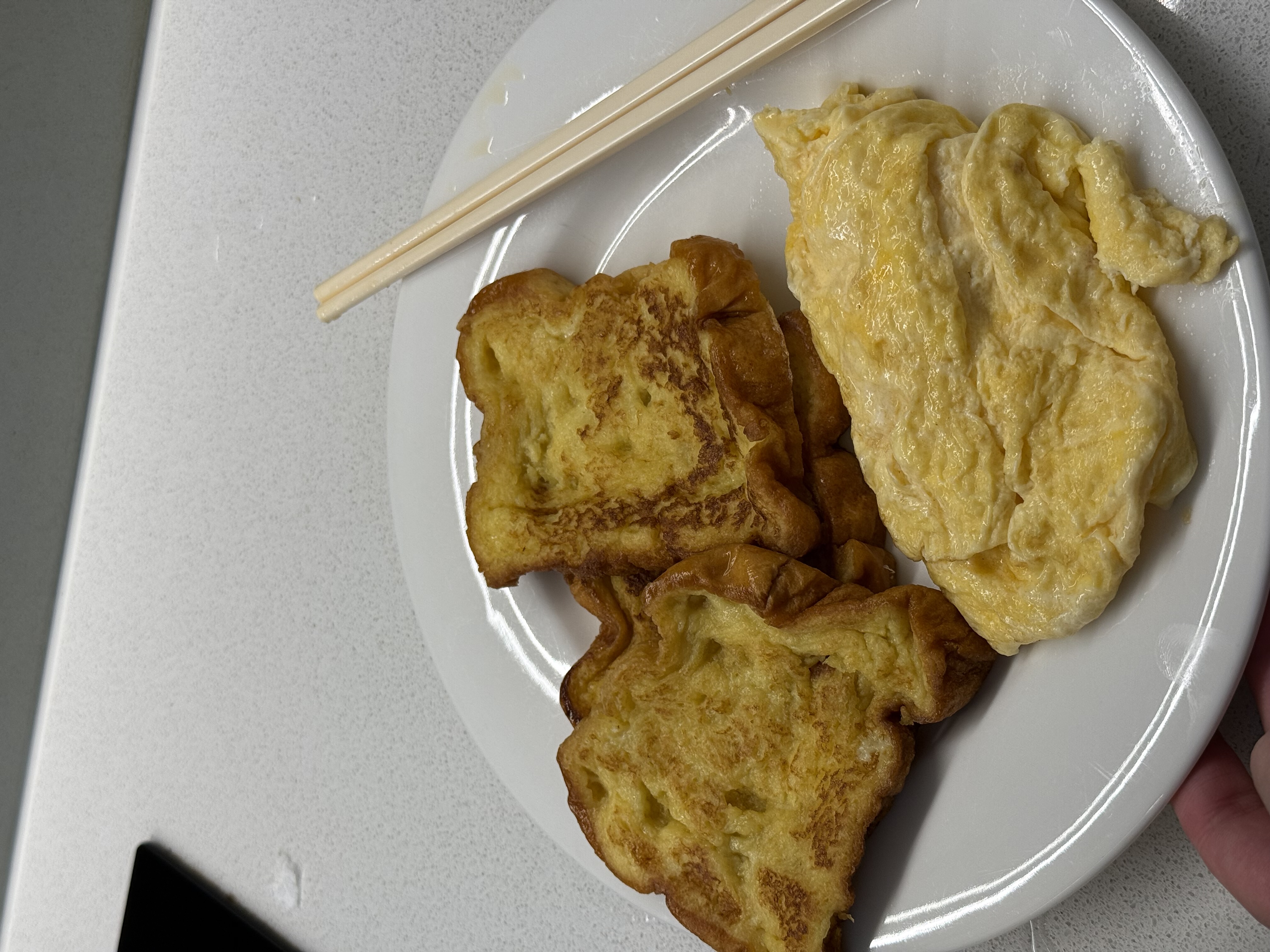 Omelet with Fried Bread | ["bread","eggs","oil"] | ["bread:200g","omelet:150g"] | |