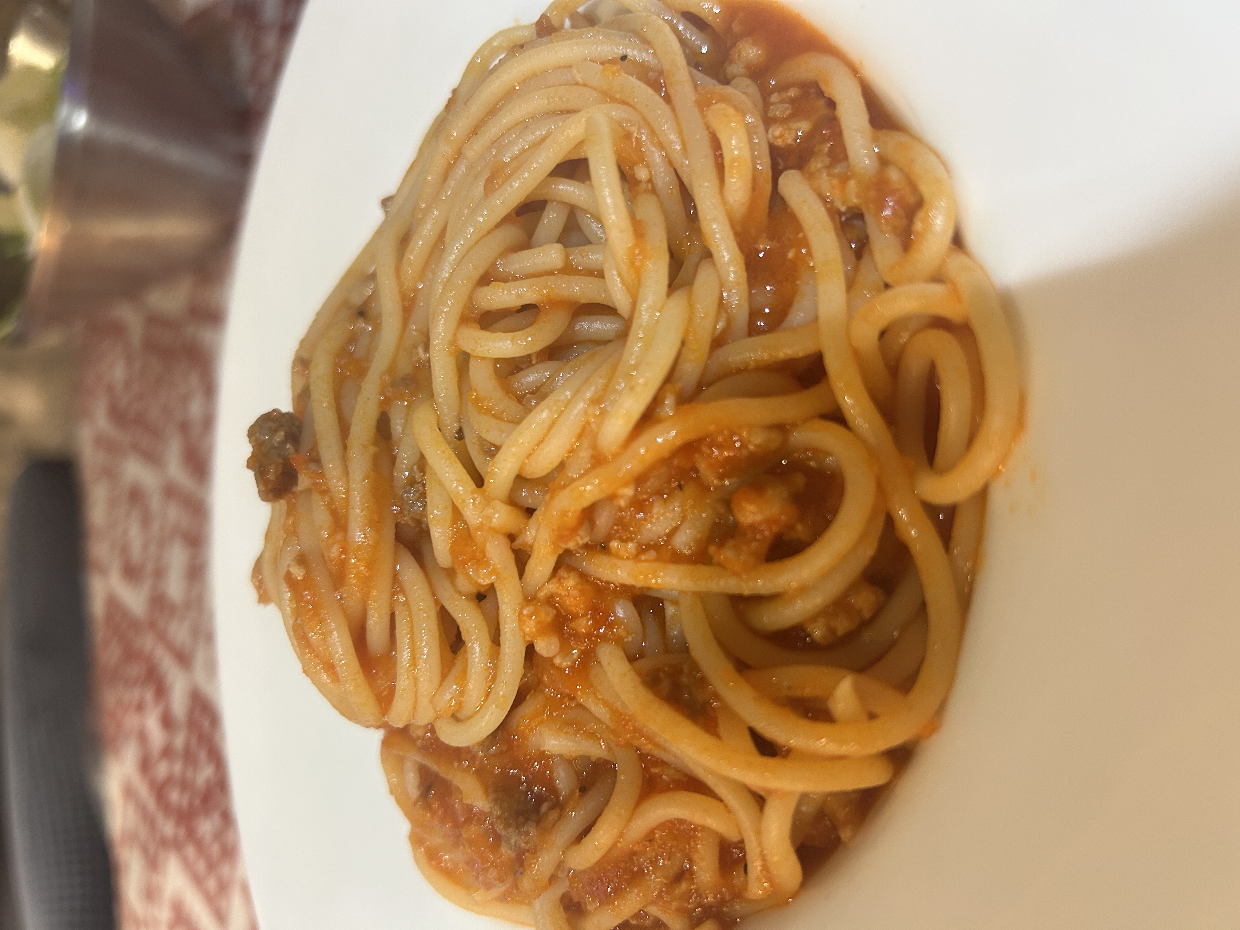 Spaghetti Bolognese | ["spaghetti","ground meat","tomato sauce","onion","garlic"] | ["spaghetti:200g","meat sauce:100g"] | |