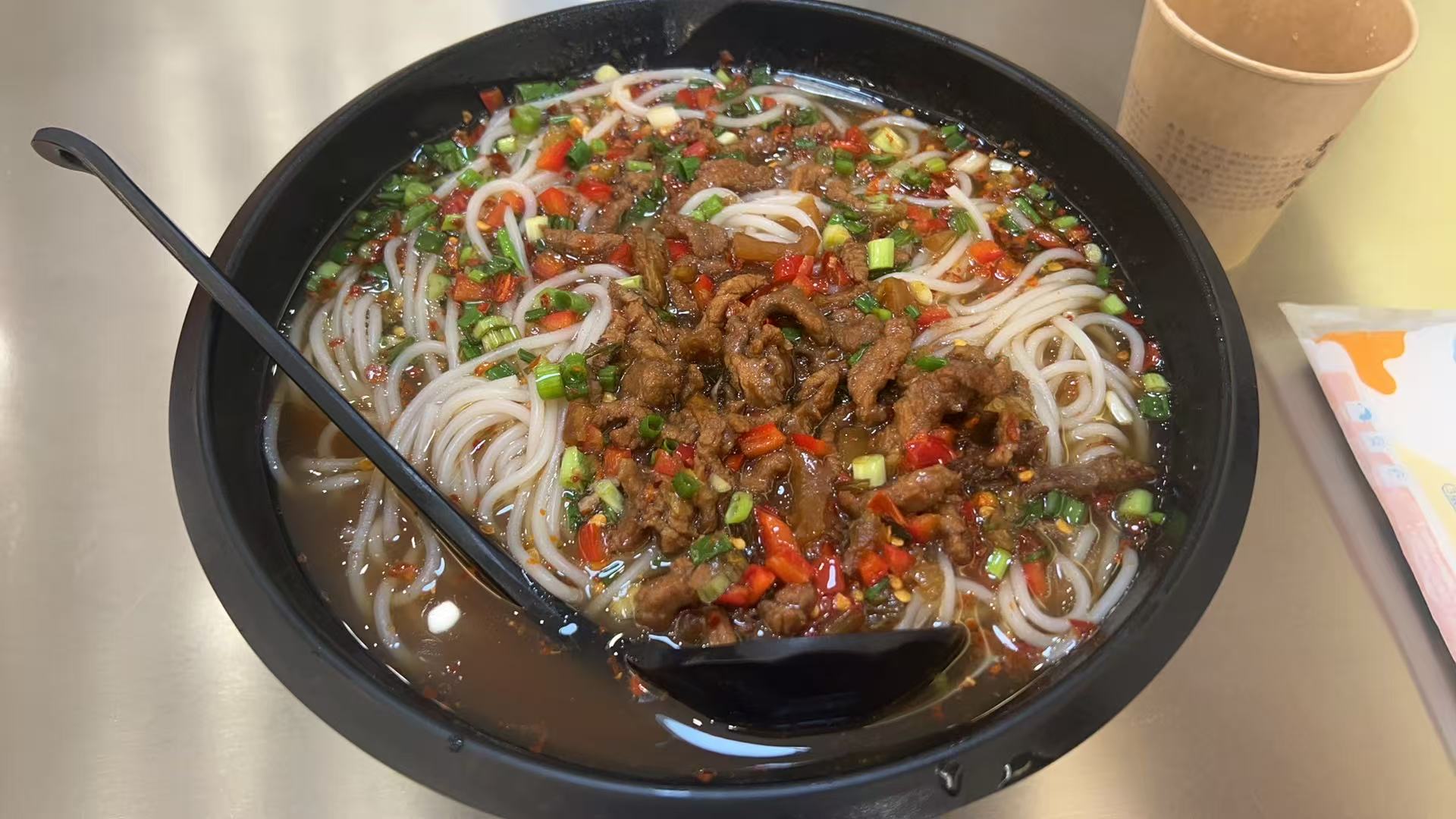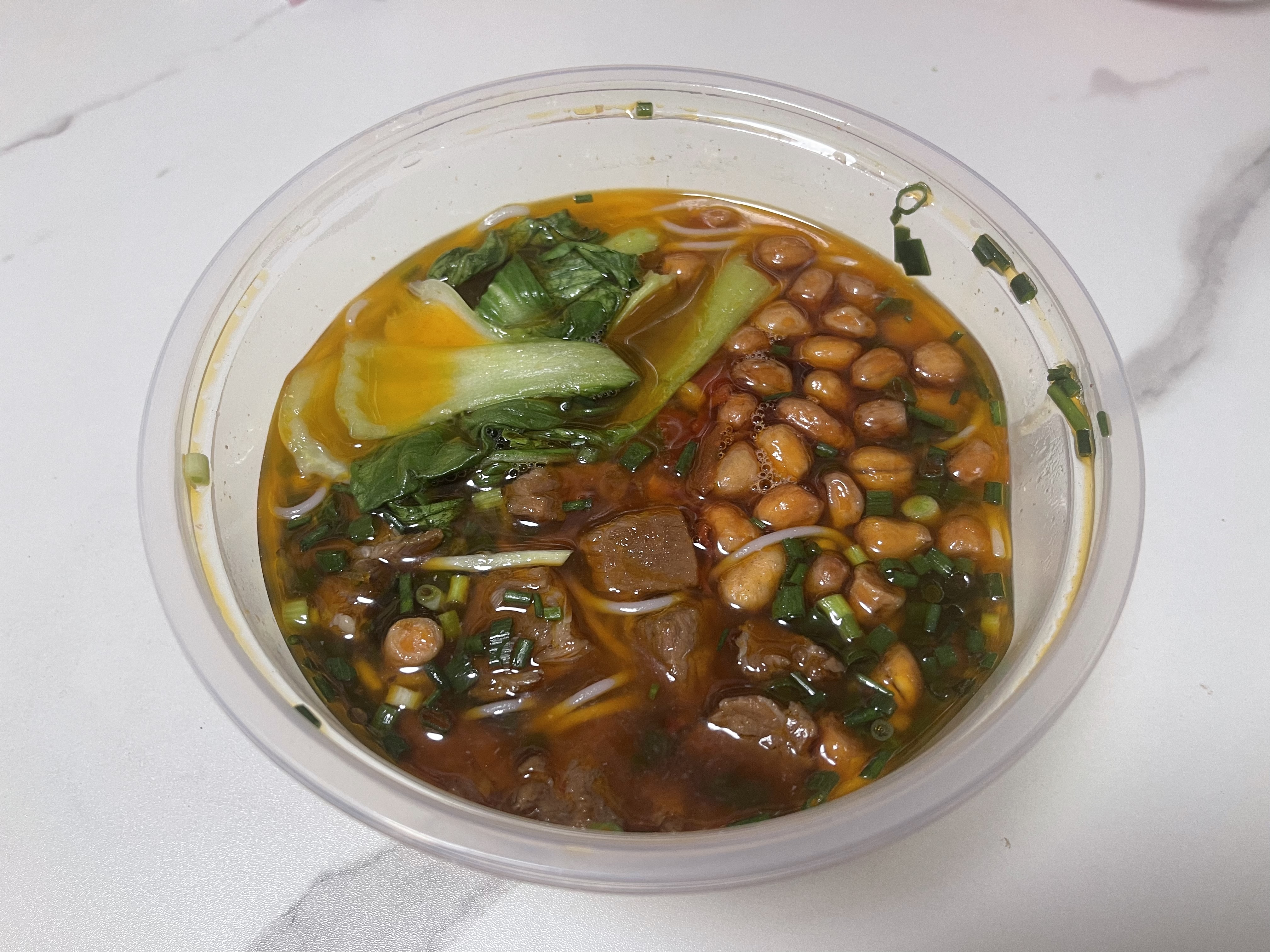 Beef Noodle Soup | ["noodles","beef","green onions","red peppers","broth"] | ["noodles:300g","beef:100g","vegetables:50g"] | |