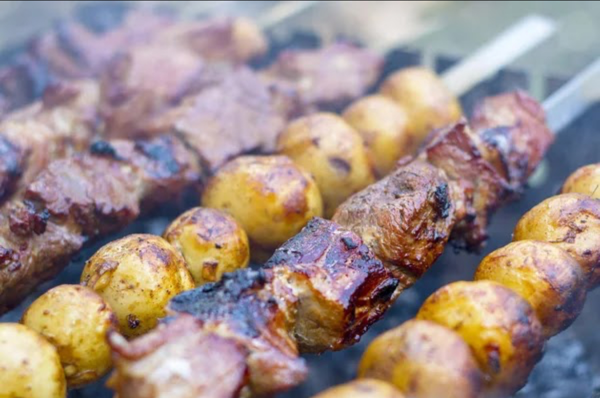 Grilled Meat Skewers with Potatoes | ["meat","potatoes","seasoning"] | ["meat:250g","potatoes:150g"] | |
