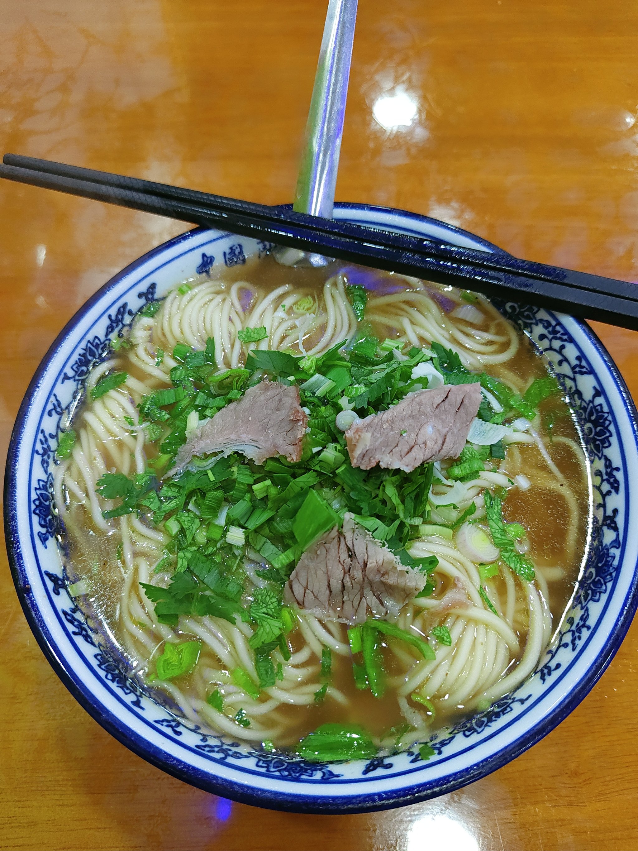 Beef Noodle Soup | ["noodles","beef","broth","green onions","cilantro"] | ["noodles:200g","beef:100g","broth:300ml","herbs:50g"] | |