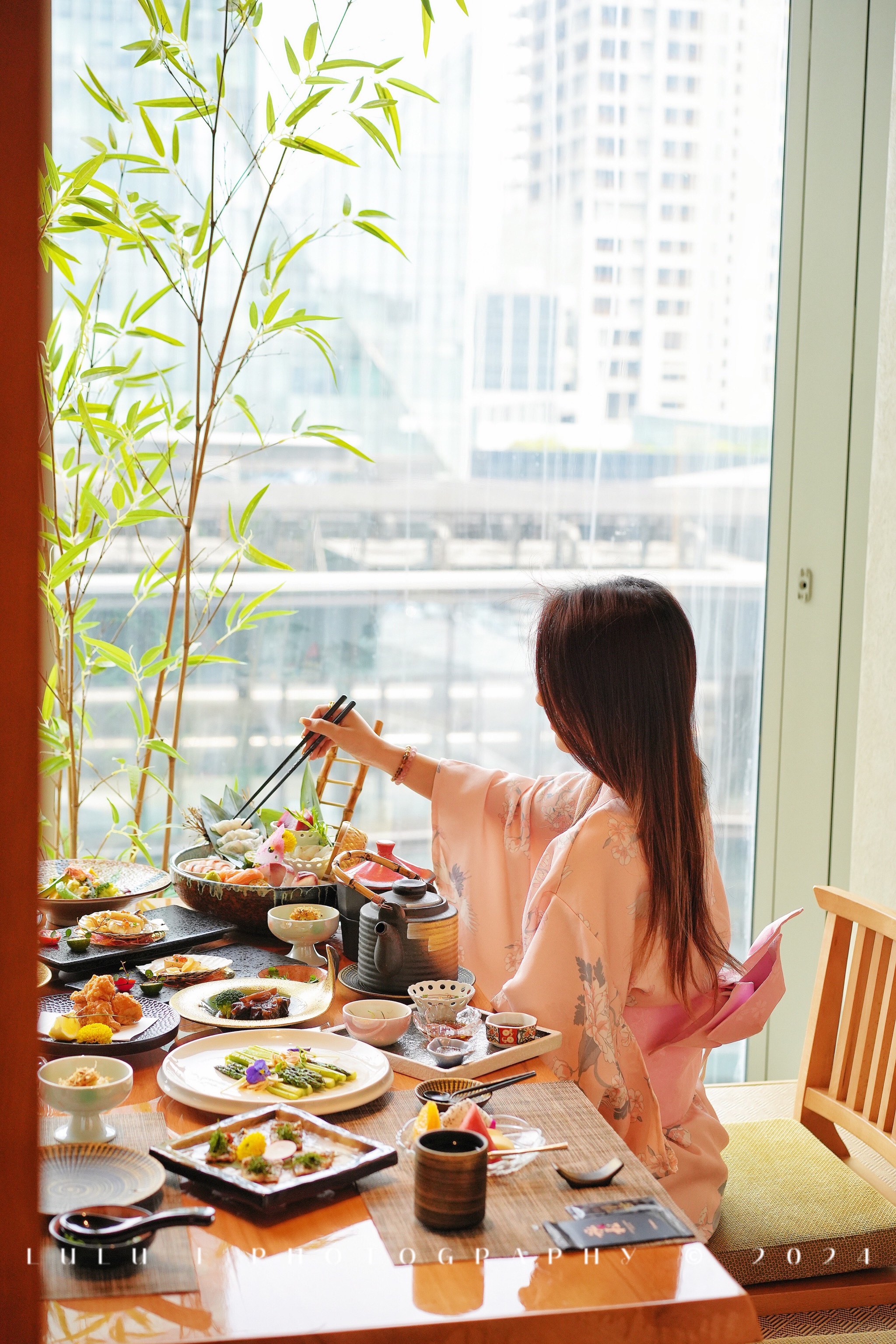 Japanese multi-course meal | ["sushi","sashimi","vegetables","rice"] | ["sushi:200g","sashimi:150g","vegetables:100g","rice:150g"] | |