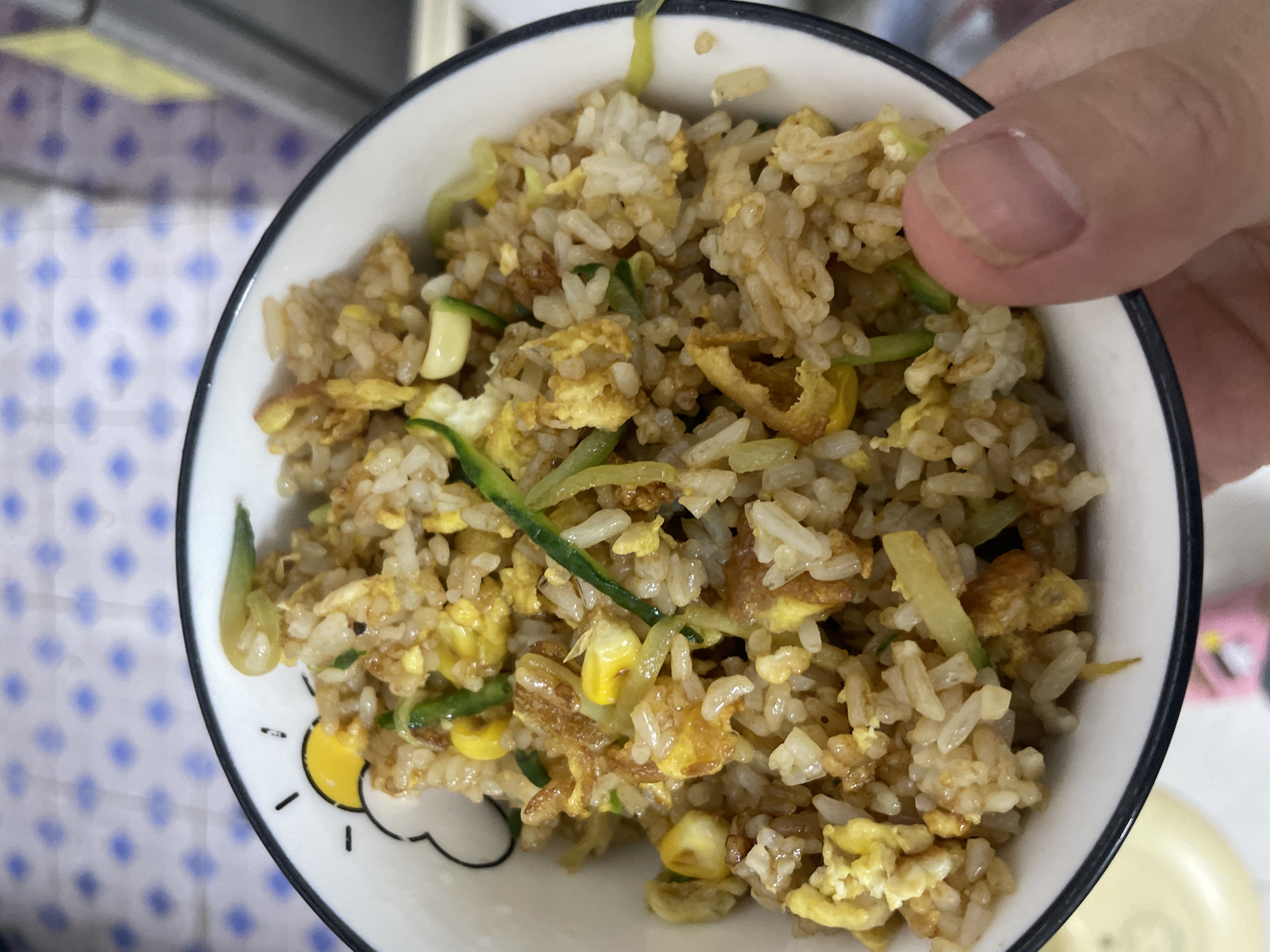 Fried Rice | ["rice","egg","green onions","corn"] | ["rice:250g","egg:50g","vegetables:50g"] | |