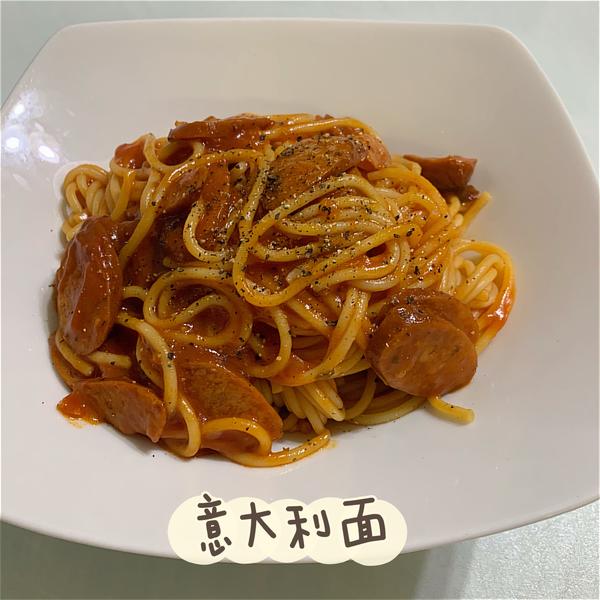 Pasta with Sausage | ["pasta","sausage","tomato sauce","black pepper"] | ["pasta:200g","sausage:100g","sauce:50g"] | |