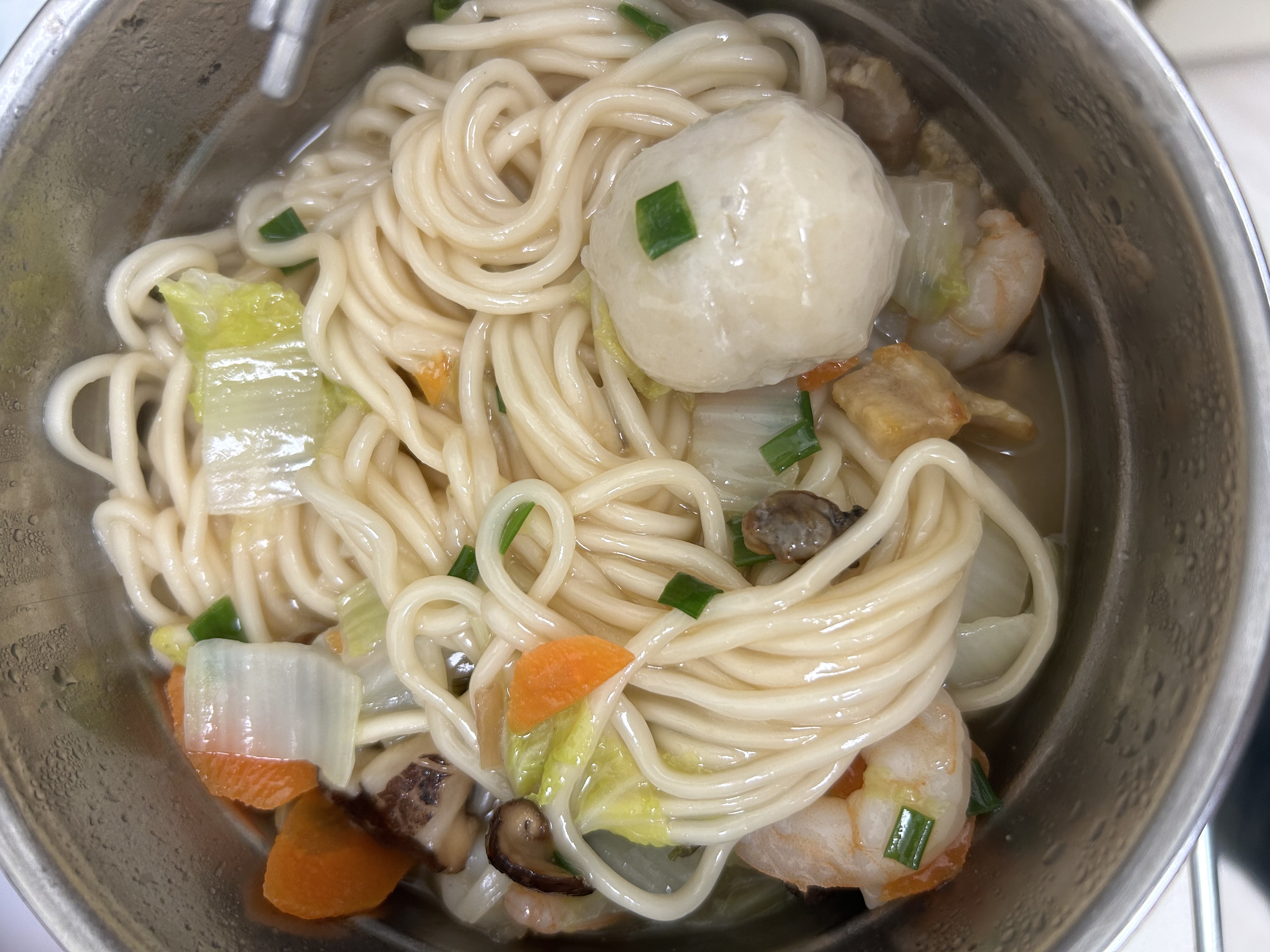 Shrimp Noodle Soup | ["noodles","shrimp","carrots","cabbage","green onions"] | ["noodles:200g","shrimp:100g","vegetables:50g"] | |