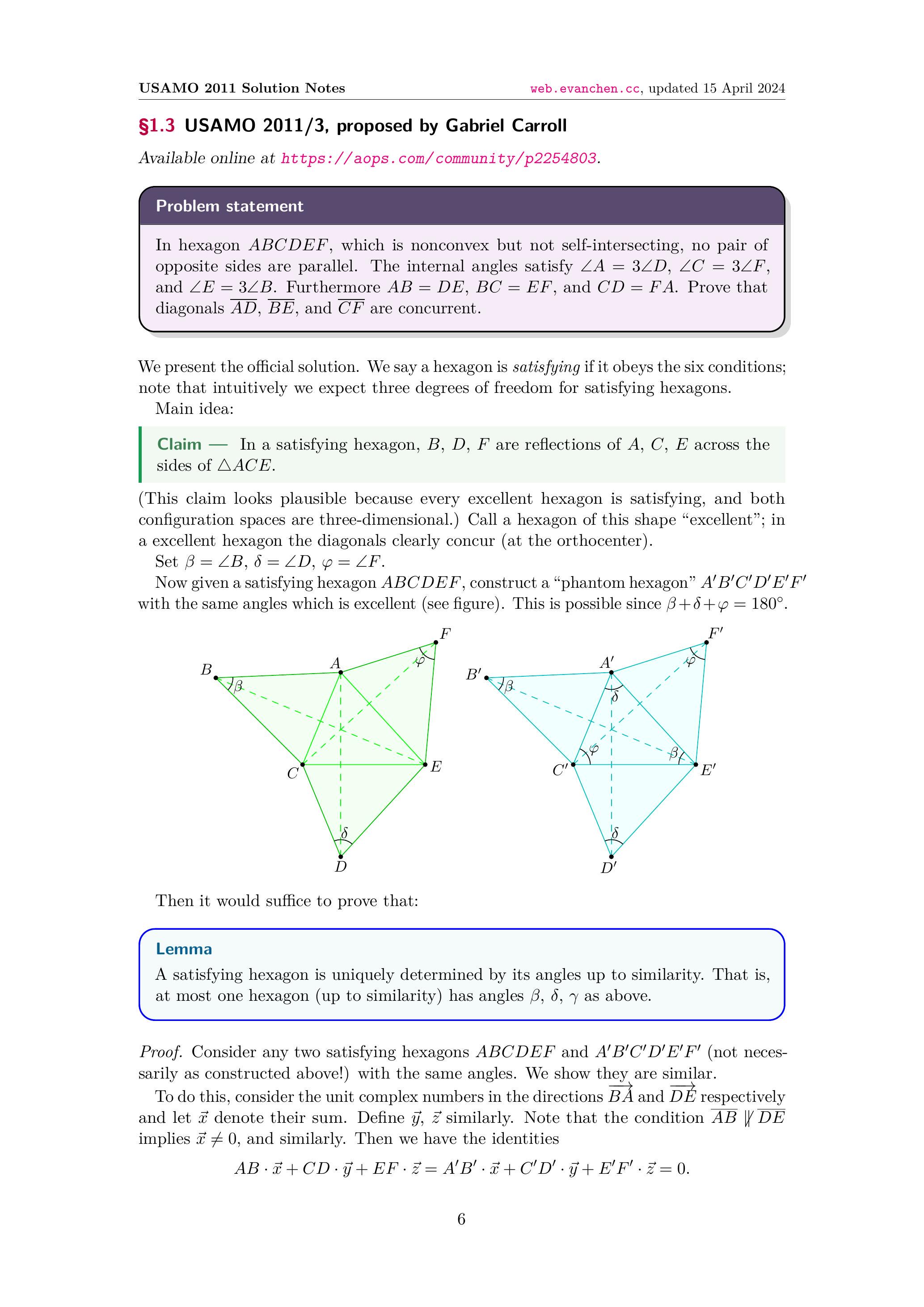 §1.3 USAMO 2011/3, proposed by Gabriel Carroll