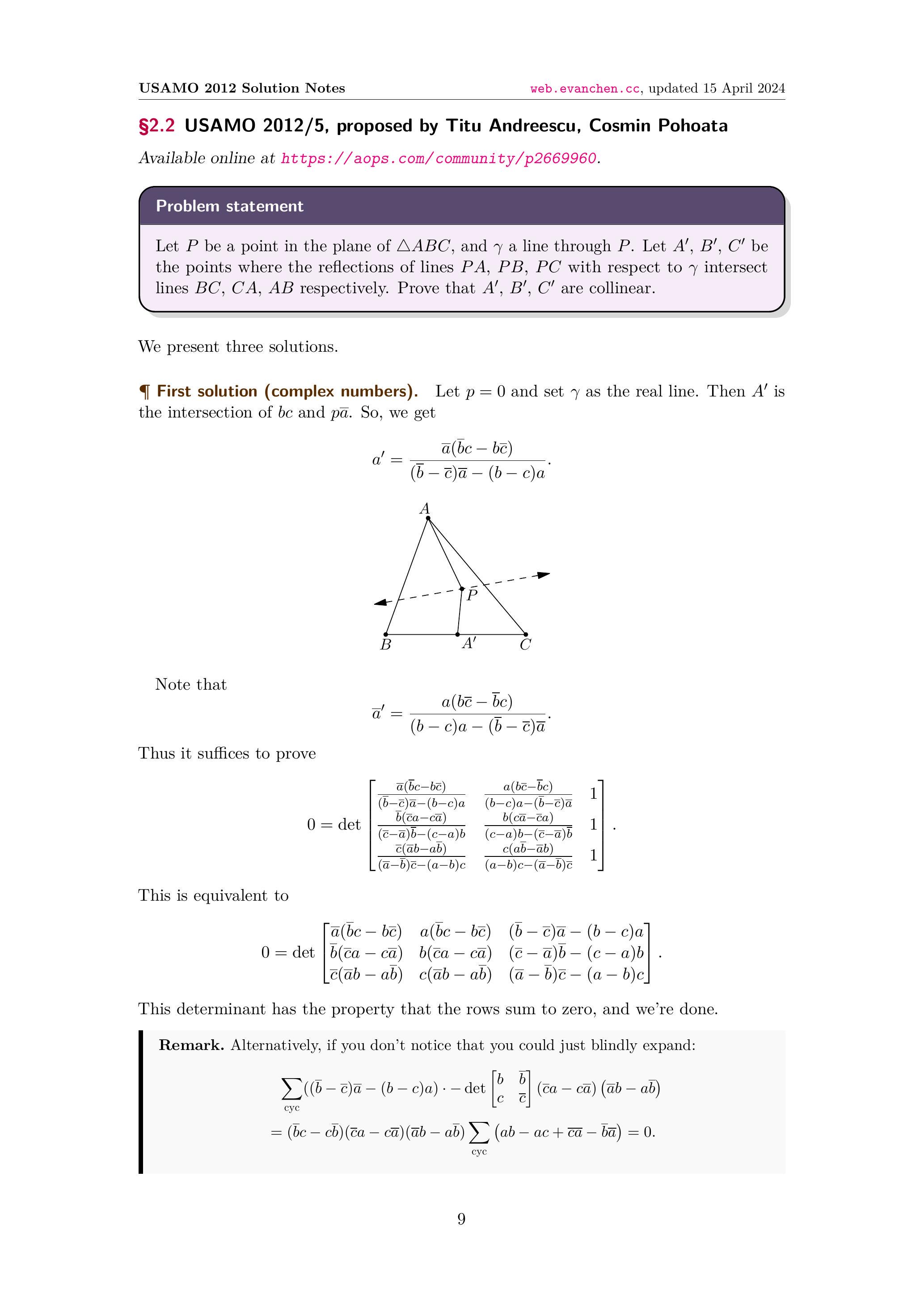 §1.2 USAMO 2012/2, proposed by Gregory Galperin