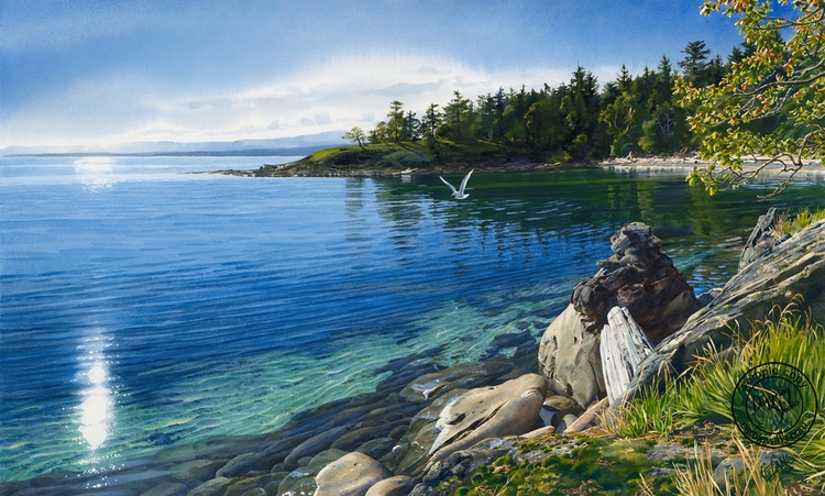 11-Sun-Warmed-Shore-Carol-Evans-Watercolour-Paintings-of-Water-with-Reflections-and-Transparency-www-designstack-co