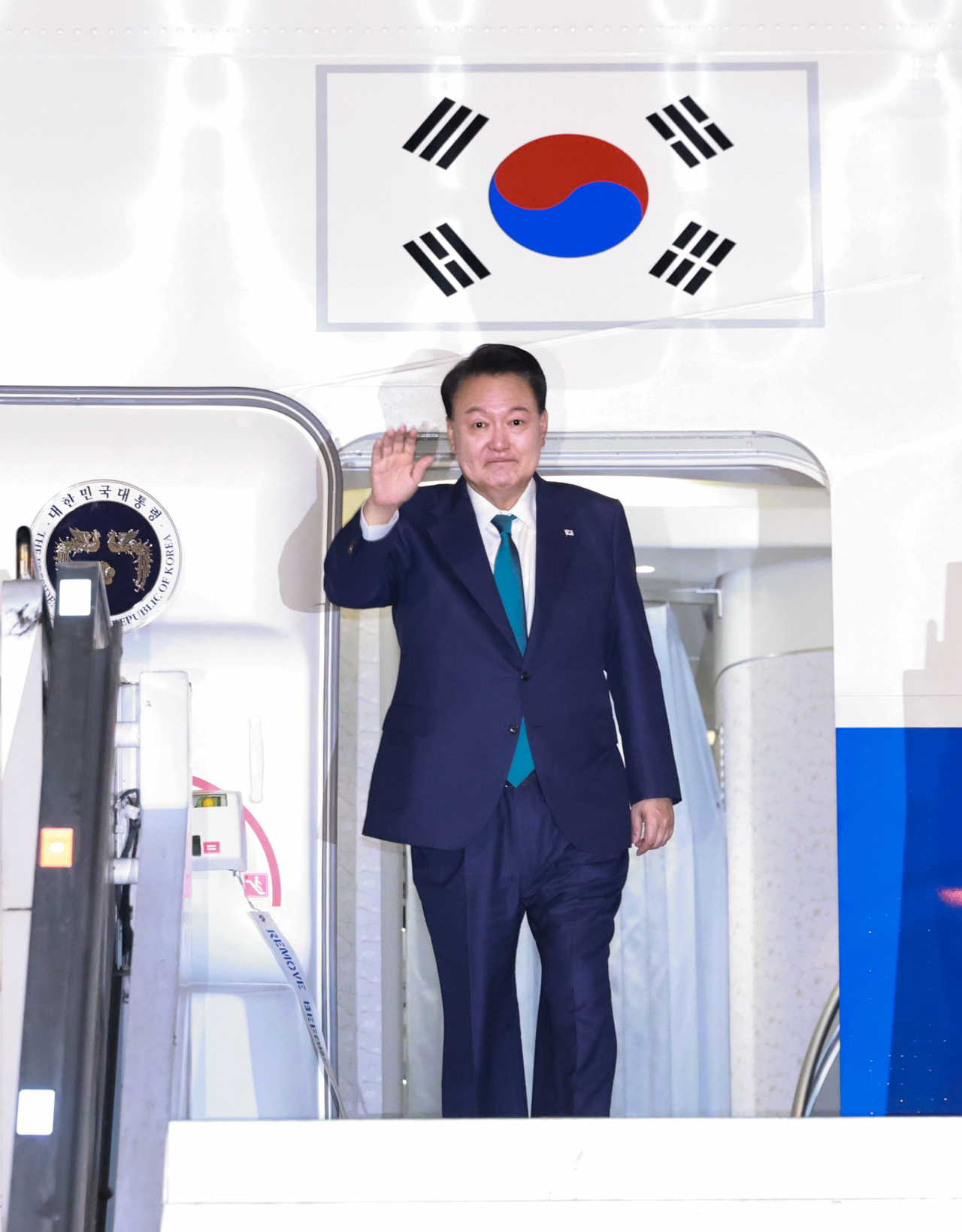 In cases where Yoon may have exited South Korean airspace on a plane, he must be confirmed to have exited the plane in a country other than South Korea for this market to resolve to "Yes".