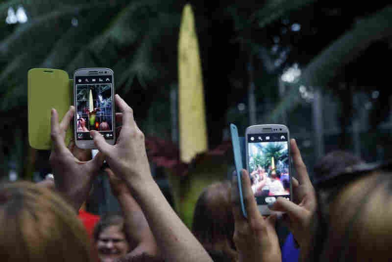 the flower was admired and photographed by many , drawing a crowd from morning until night . | 000012031 | success | null | 768 | 768 | 800 | 536 | {"Image ImageDescription": "The corpse flower was admired and photographed by many at the U.S. Botanic Garden on Monday evening, drawing a crowd from morning until night.", "Image Make": "Canon", "Image Model": "Canon EOS 5D Mark III", "Image Orientation": "Horizontal (normal)", "Image XResolution": "200", "Image YResolution": "200", "Image ResolutionUnit": "Pixels/Inch", "Image Software": "Adobe Photoshop CS4 Macintosh", "Image DateTime": "2013:07:23 12:33:48", "Image Artist": "Heather Rousseau", "Image WhitePoint": "[313/1000, 329/1000]", "Image PrimaryChromaticities": "[16/25, 33/100, 21/100, 71/100, 3/20, 3/50]", "Image YCbCrCoefficients": "[299/1000, 587/1000, 57/500]", "Image YCbCrPositioning": "Co-sited", "Image Copyright": "\u00a9 2013 Heather Rousseau / NPR", "Image ExifOffset": "592", "GPS GPSVersionID": "[0, 0, 0, 0]", "Image GPSInfo": "1540", "Thumbnail Compression": "JPEG (old-style)", "Thumbnail XResolution": "72", "Thumbnail YResolution": "72", "Thumbnail ResolutionUnit": "Pixels/Inch", "Thumbnail JPEGInterchangeFormat": "1654", "Thumbnail JPEGInterchangeFormatLength": "5471", "EXIF ExposureTime": "1/200", "EXIF FNumber": "9/2", "EXIF ExposureProgram": "Manual", "EXIF ISOSpeedRatings": "2000", "EXIF SensitivityType": "Recommended Exposure Index", "EXIF RecommendedExposureIndex": "2000", "EXIF ExifVersion": "", "EXIF DateTimeOriginal": "2013:07:22 17:35:56", "EXIF DateTimeDigitized": "2013:07:22 17:35:56", "EXIF ComponentsConfiguration": "", "EXIF ShutterSpeedValue": "61/8", "EXIF ApertureValue": "35/8", "EXIF ExposureBiasValue": "0", "EXIF MeteringMode": "Spot", "EXIF Flash": "Flash did not fire, compulsory flash mode", "EXIF FocalLength": "62", "EXIF SubSecTime": "07", "EXIF SubSecTimeOriginal": "07", "EXIF SubSecTimeDigitized": "07", "EXIF FlashPixVersion": "", "EXIF ColorSpace": "Uncalibrated", "EXIF ExifImageWidth": "1922", "EXIF ExifImageLength": "1288", "Interoperability InteroperabilityIndex": "R03", "Interoperability InteroperabilityVersion": "[0, 0, 0, 0]", "EXIF InteroperabilityOffset": "1508", "EXIF FocalPlaneXResolution": "1920000/487", "EXIF FocalPlaneYResolution": "320000/81", "EXIF FocalPlaneResolutionUnit": "2", "EXIF CustomRendered": "Normal", "EXIF ExposureMode": "Manual Exposure", "EXIF WhiteBalance": "Auto", "EXIF SceneCaptureType": "Standard", "EXIF CameraOwnerName": "", "EXIF BodySerialNumber": "072024001708", "EXIF LensSpecification": "[24, 70, 0, 0]", "EXIF LensModel": "EF24-70mm f/2.8L USM", "EXIF LensSerialNumber": "0000000000", "EXIF Gamma": "11/5"} | 3b53cf226bbfcf3b934a821a5fb85600d5ec097c461714b2f9df2b0588a2cf18 | |