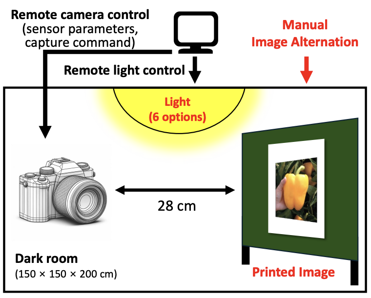 To address the limitations of existing robustness benchmarks, including ImageNet-ES, we customized ES-Studio into ES-Studio Diverse by replacing the reference display with printed images captured from a screen. While maintaining control over lighting and sensor parameters as in ES-Studio, this customized setup and broader lighting variations enable the collection of data that is complementary to ImageNet-ES.