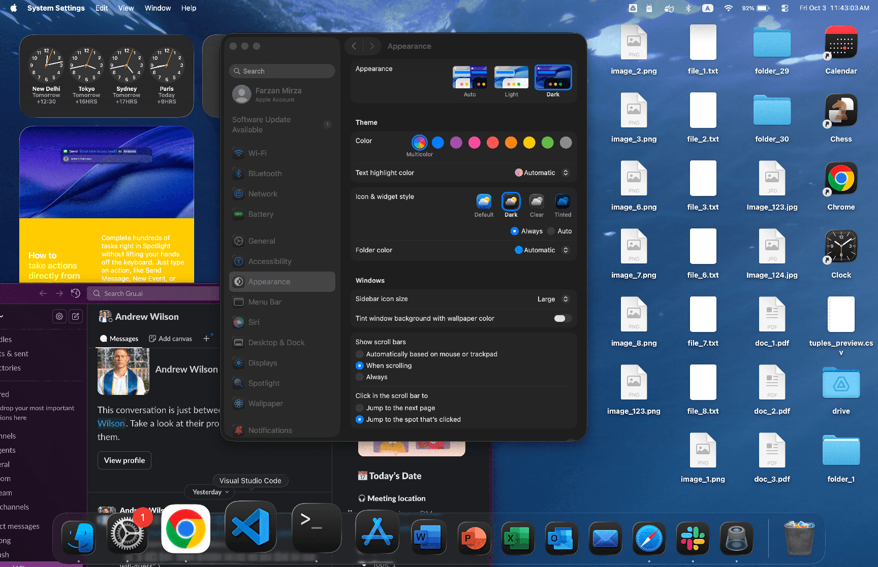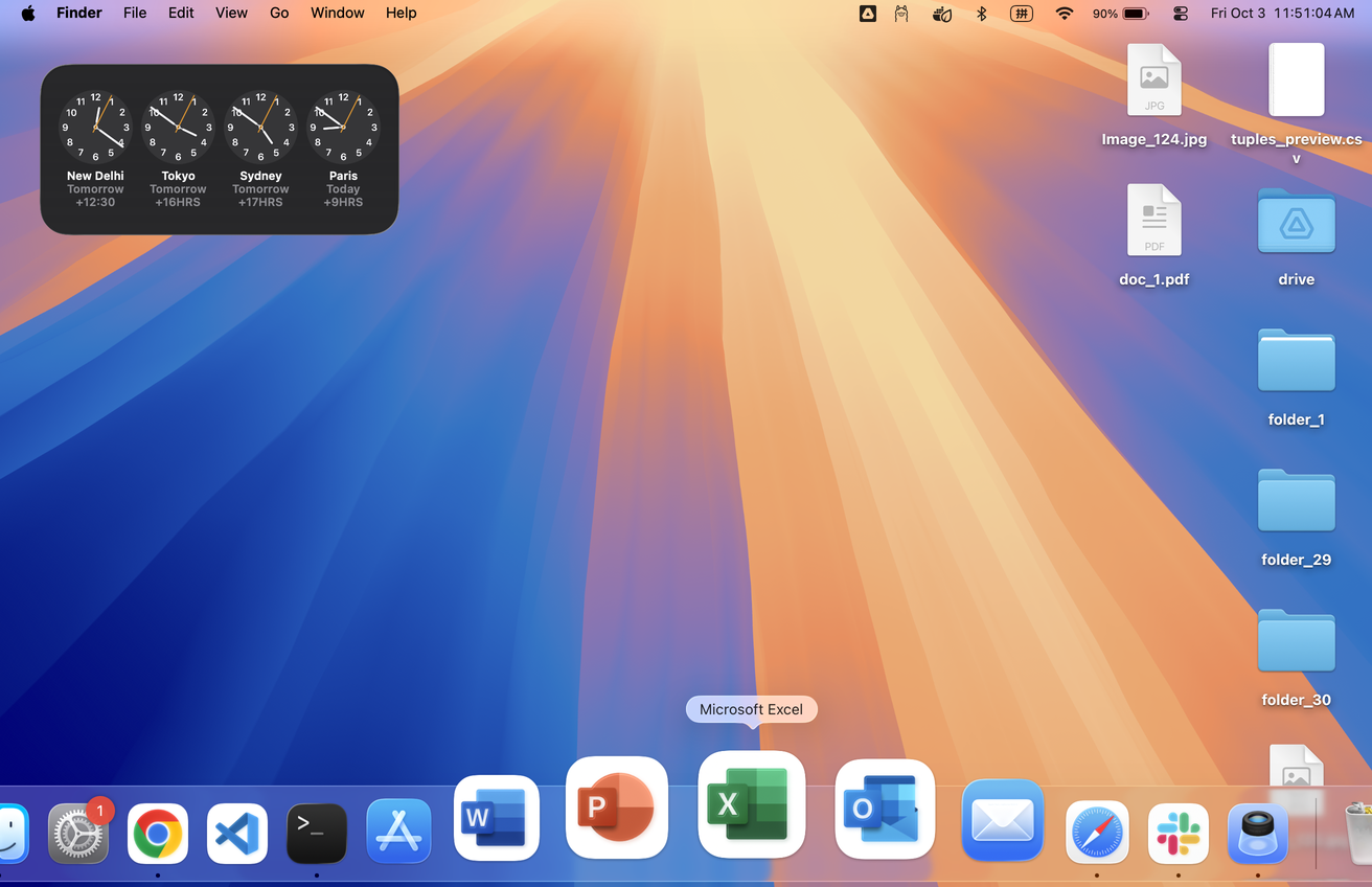 25 | mac | 1,312 | 848 | click | the clock widget displaying four analog clocks with city names (New Delhi, Tokyo, Sydney, Paris) and time zone information on a dark rounded rectangular background in the top-left area of the desktop. Located in the upper-left corner of the screen, showing white clock faces with gold second hands and corresponding time zone offsets below each city name. | 47 | 70 | 376 | 218 | 376 | 218 | 47 | 218 | null | null | null | null | null | null | null | null | null | Target: the clock widget displaying four analog clocks with city names (New Delhi, Tokyo, Sydney, Paris) and time zone information on a dark rounded rectangular background in the top-left area of the desktop. Located in the upper-left corner of the screen, showing white clock faces with gold second hands and corresponding time zone offsets below each city name. | |