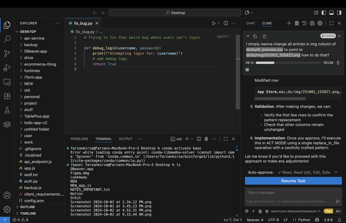 51 | mac | 1,168 | 755 | click | the "CHAT" text tab in the top-right panel header, positioned immediately to the left of "CLINE" which is currently selected with blue underline. Located in the right sidebar's header area, displayed in white text on dark background. | 819 | 36 | 869 | 36 | 869 | 77 | 819 | 77 | null | null | null | null | null | null | null | null | null | Target: the "CHAT" text tab in the top-right panel header, positioned immediately to the left of "CLINE" which is currently selected with blue underline. Located in the right sidebar's header area, displayed in white text on dark background. | |