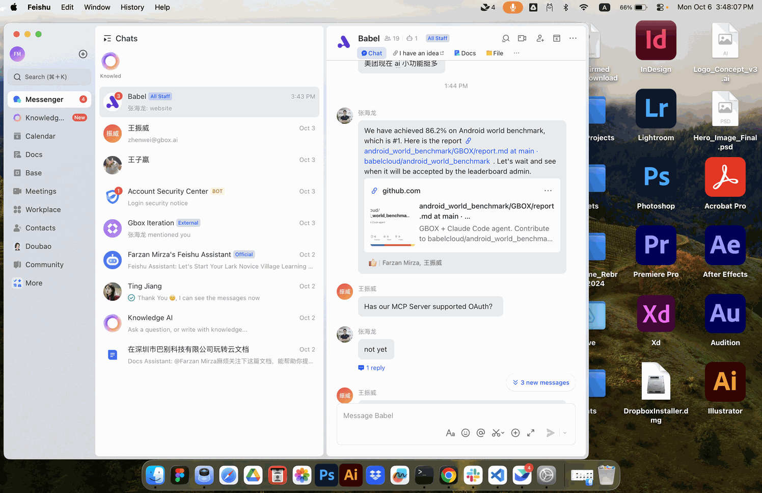 61 | mac | 1,496 | 967 | click | the small light orange "Like" icon to the left of the text "Farzan Mirza, 王振威" at the bottom of the message about Android world benchmark achievement. Located in the chat message area of the Feishu application window, appearing right below the github.com URL render. | 723 | 506 | 743 | 506 | 743 | 524 | 723 | 524 | null | null | null | null | null | null | null | null | null | Target: the small light orange "Like" icon to the left of the text "Farzan Mirza, 王振威" at the bottom of the message about Android world benchmark achievement. Located in the chat message area of the Feishu application window, appearing right below the github.com URL render. | |
