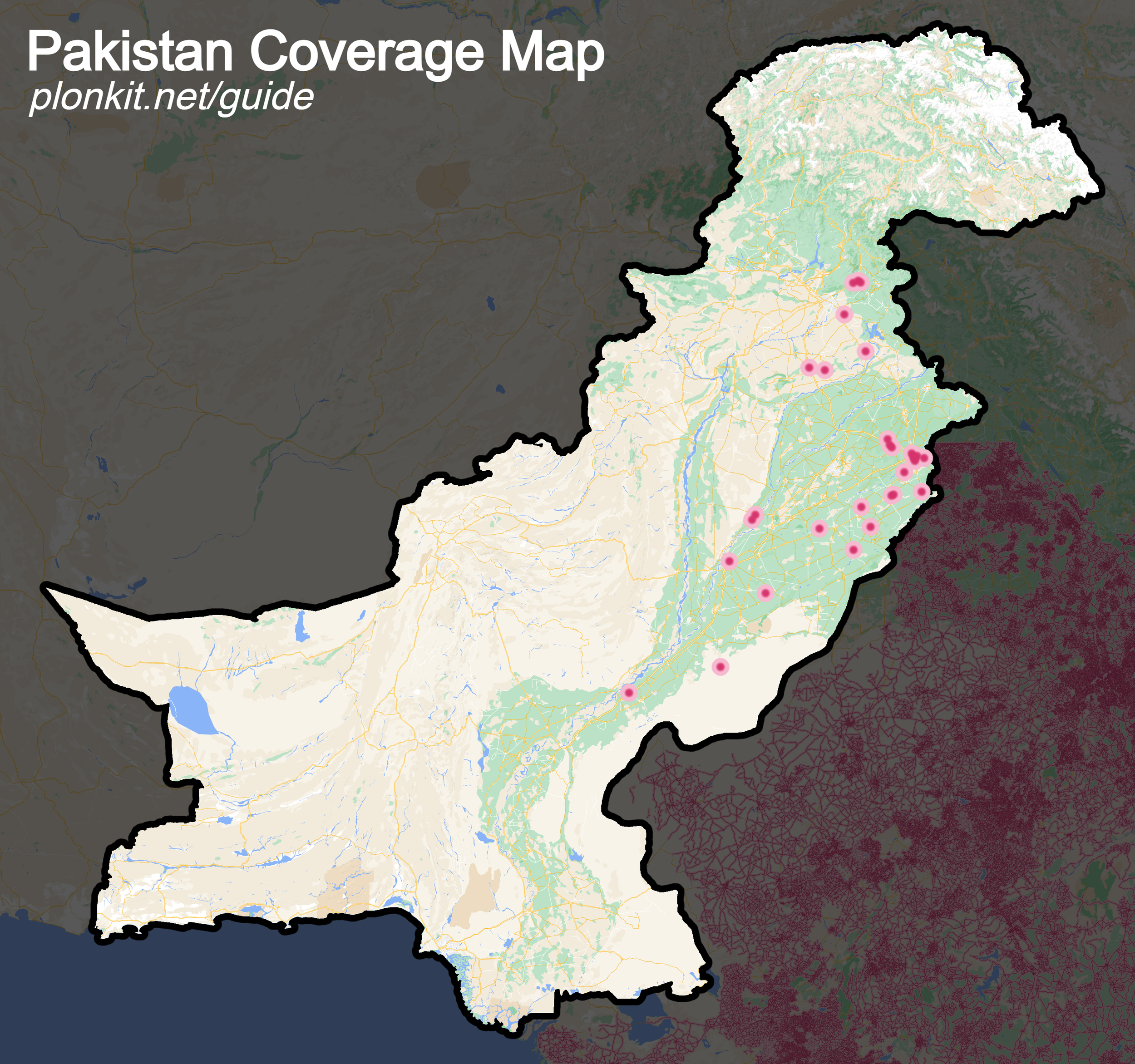Coverage in Pakistan is extremely limited, only being found in Punjab around major temples and tourist attractions.