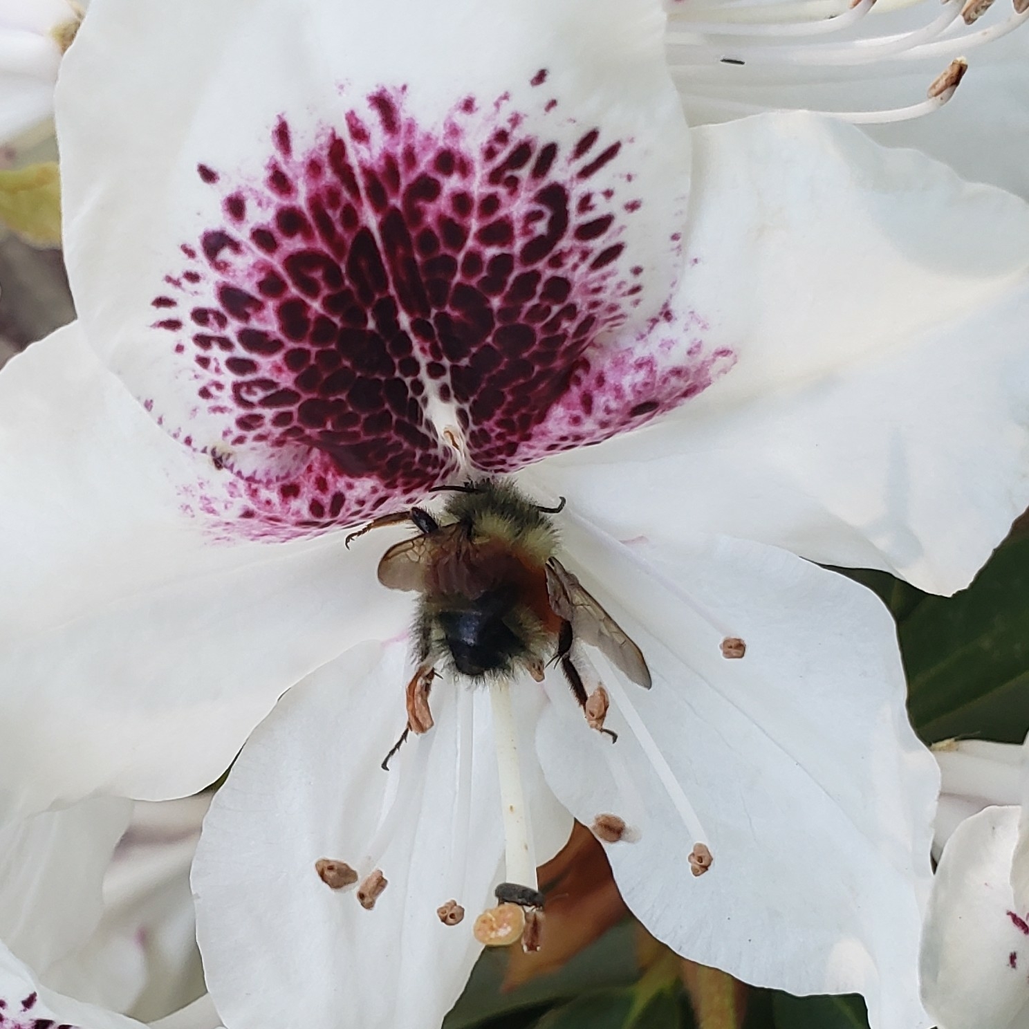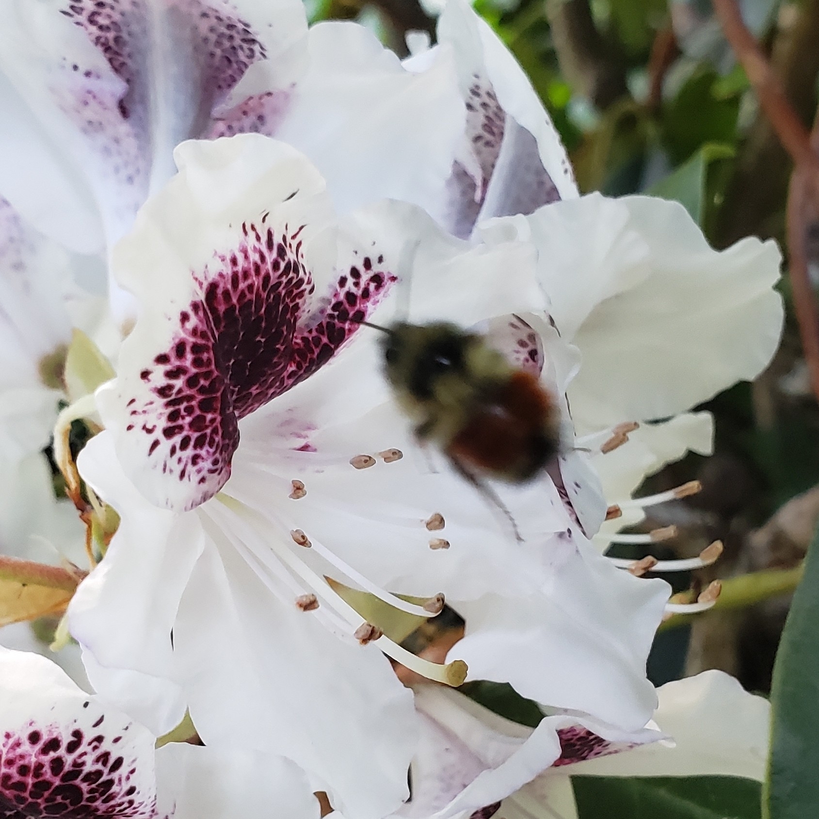 Bombus melanopygus | species | Rhododendron | genus | visits | Animalia | Arthropoda | Insecta | Hymenoptera | Apidae | Bombus | Plantae | Tracheophyta | Magnoliopsida | Ericales | Ericaceae | Rhododendron | 49.054756 | -122.784398 | 2023 | 5 | 28 | http://creativecommons.org/licenses/by-nc/4.0/ | https://www.inaturalist.org/observations/165257900 | |