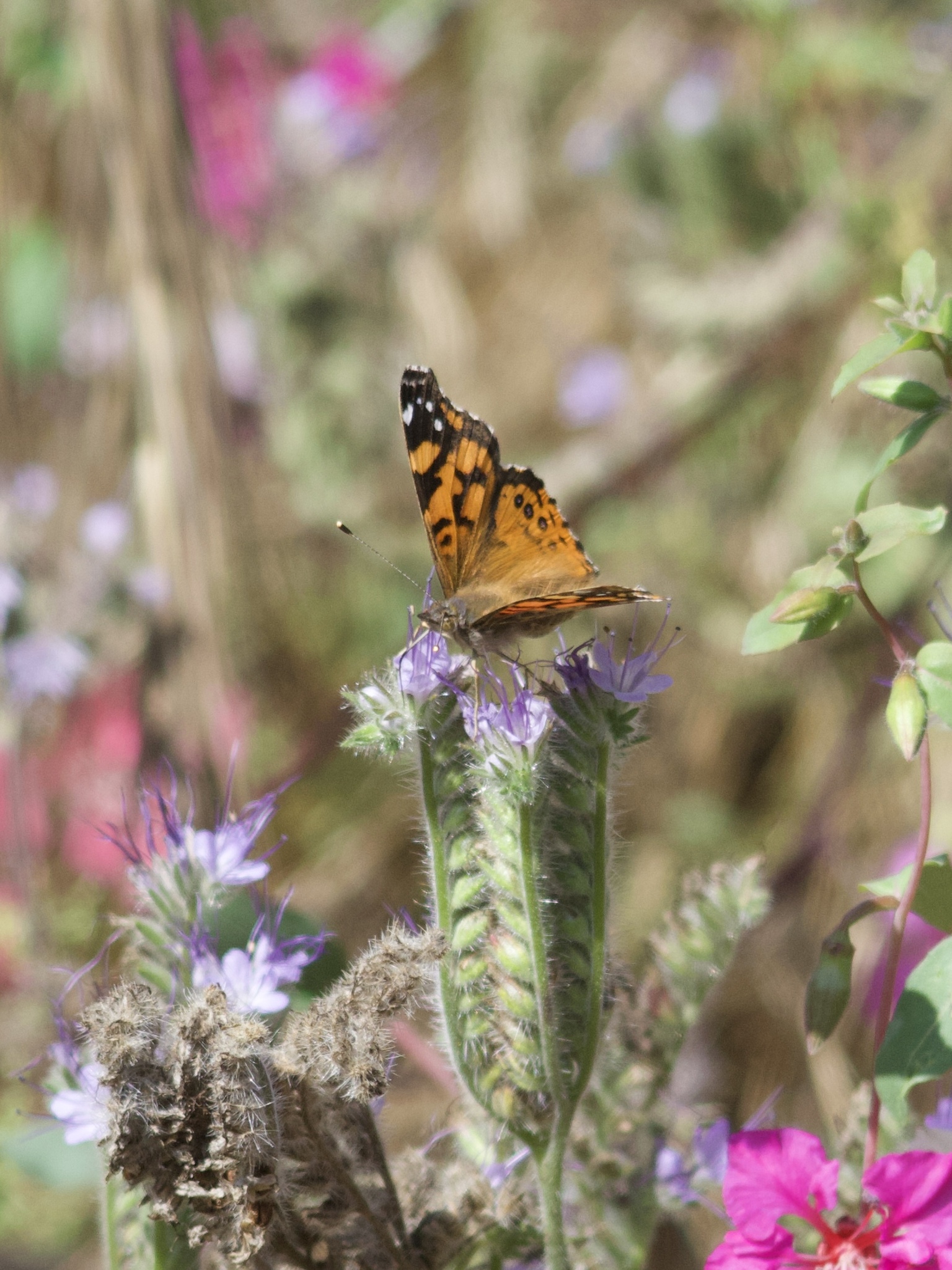 Vanessa annabella | species | Phacelia tanacetifolia | species | eats | Animalia | Arthropoda | Insecta | Lepidoptera | Nymphalidae | Vanessa | Plantae | Tracheophyta | Magnoliopsida | Boraginales | Hydrophyllaceae | Phacelia | 34.197746 | -118.147988 | 2023 | 6 | 2 | http://creativecommons.org/licenses/by-nc/4.0/ | https://www.inaturalist.org/observations/165259417 | |